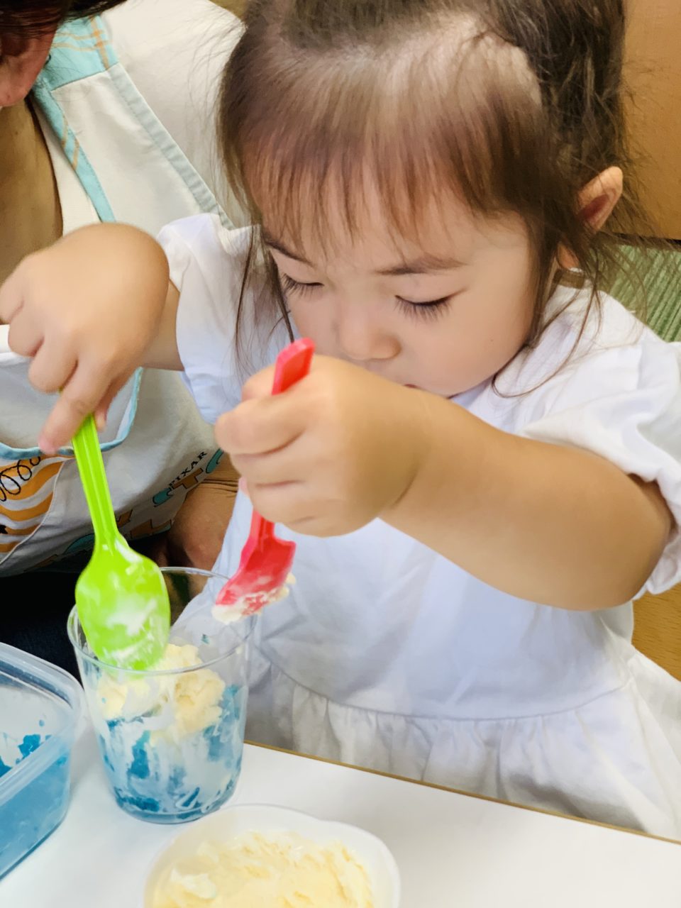 十分に細かくなったら、アイスとゼリーを順番に容器に入れていきます!