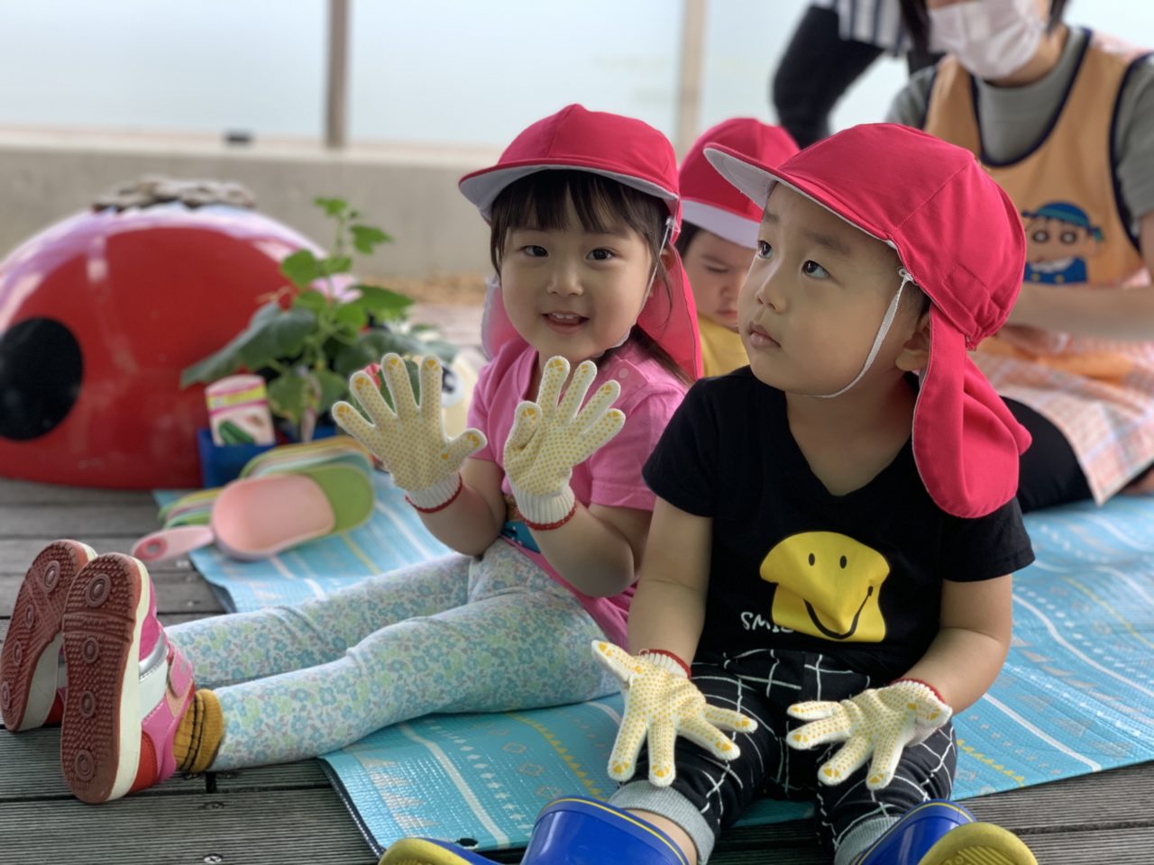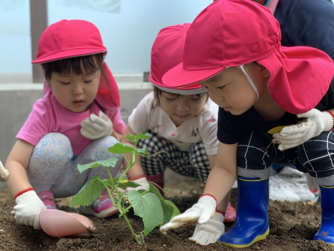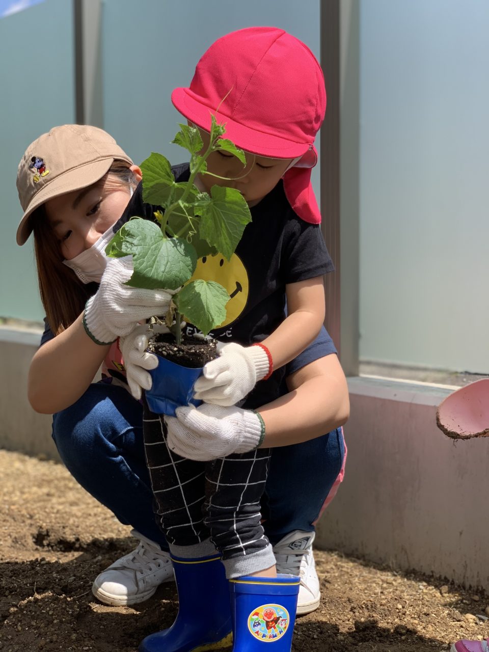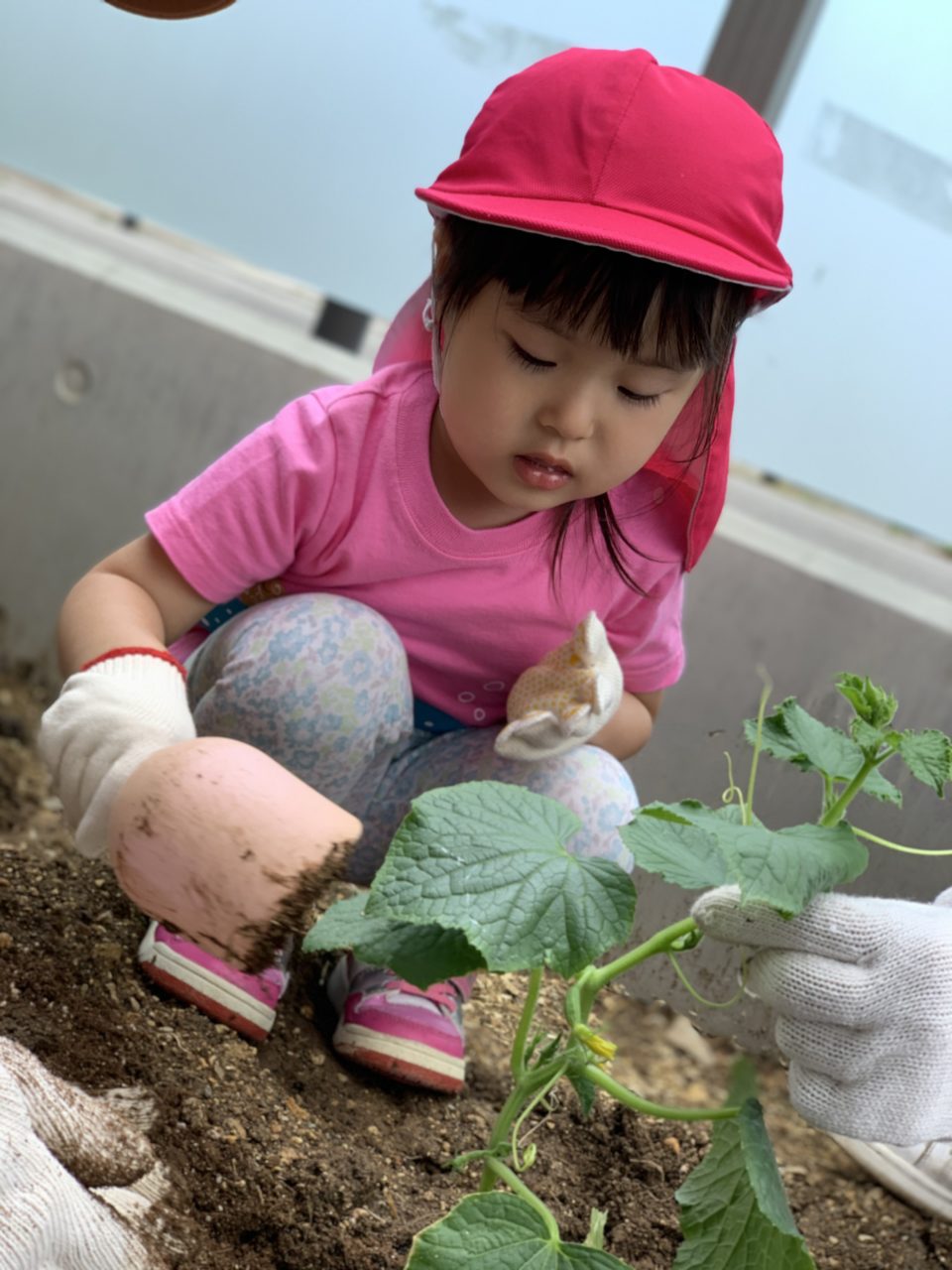 きゅうりの苗は2歳児さんが植えてくれました❤️