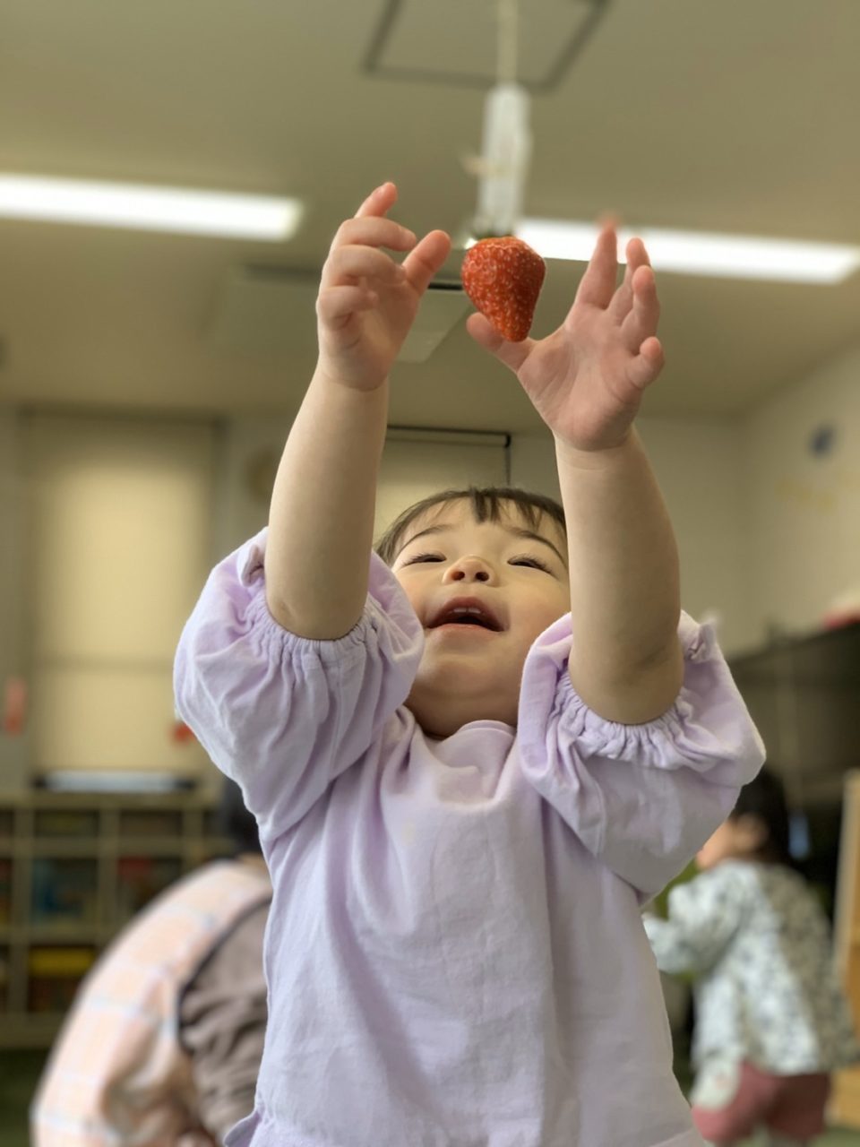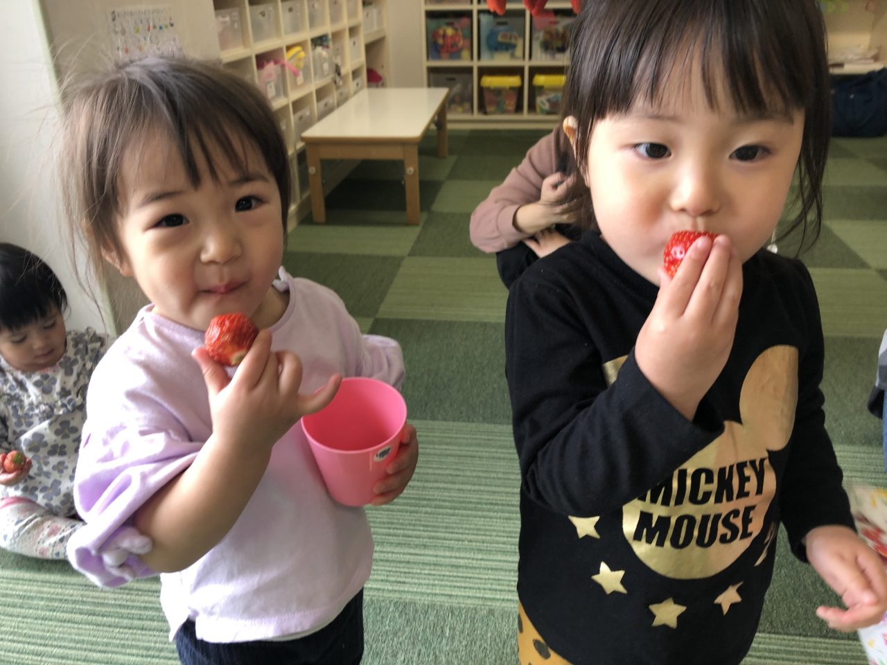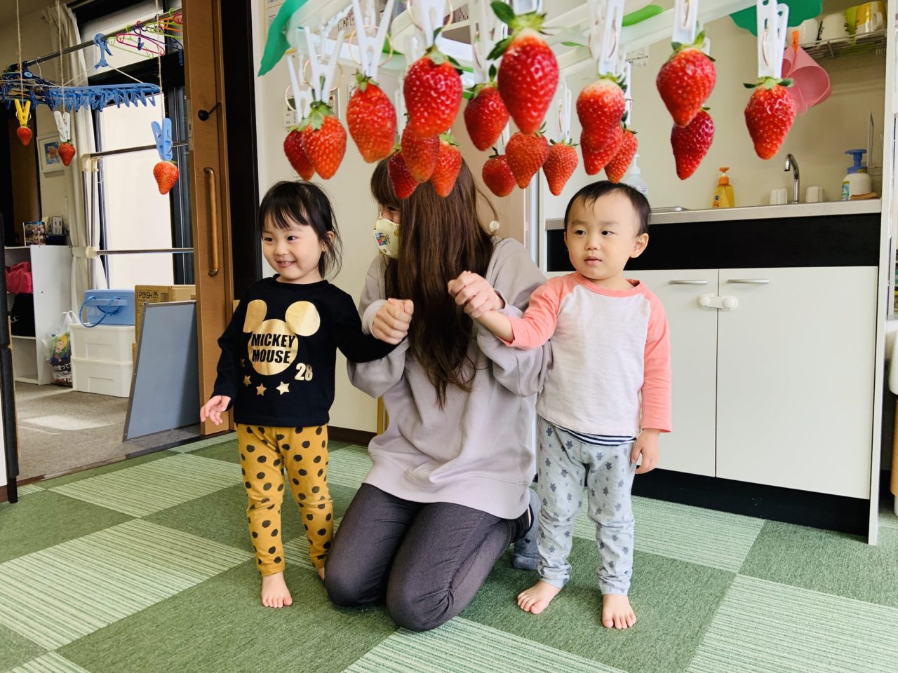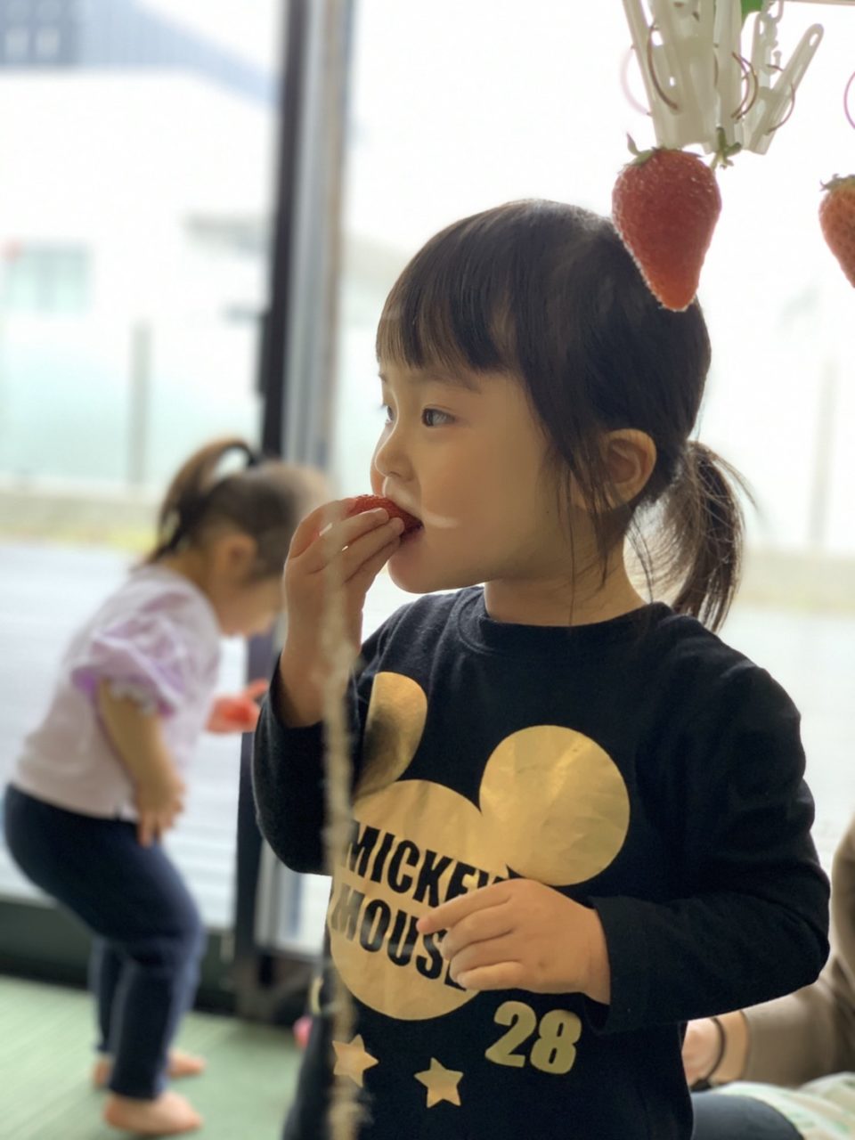 保育室の中でもいちご狩りが十分に楽しめましたよ🍓😆