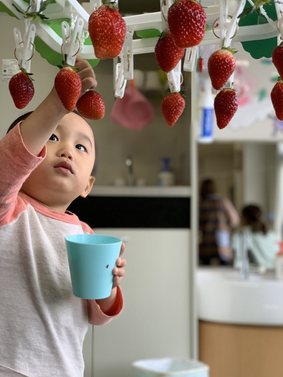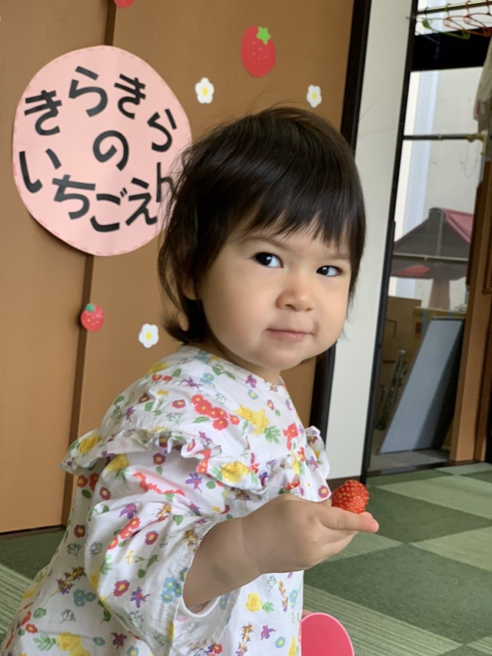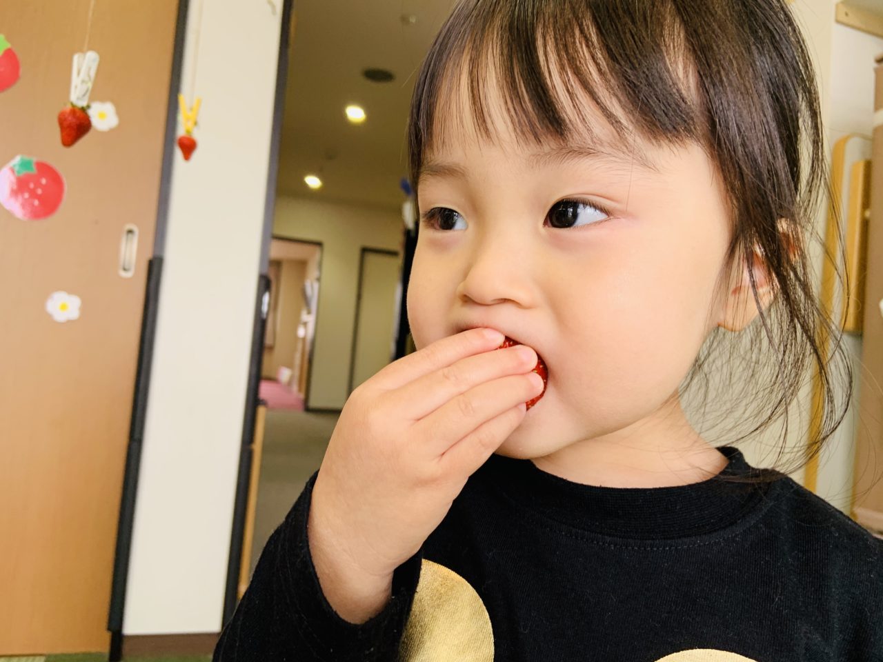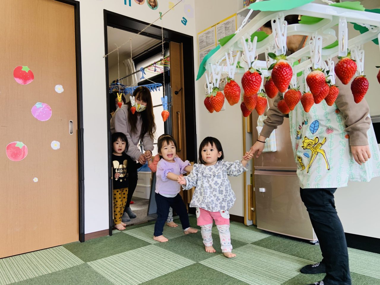保育室の中でもいちご狩りが十分に楽しめましたよ🍓😆