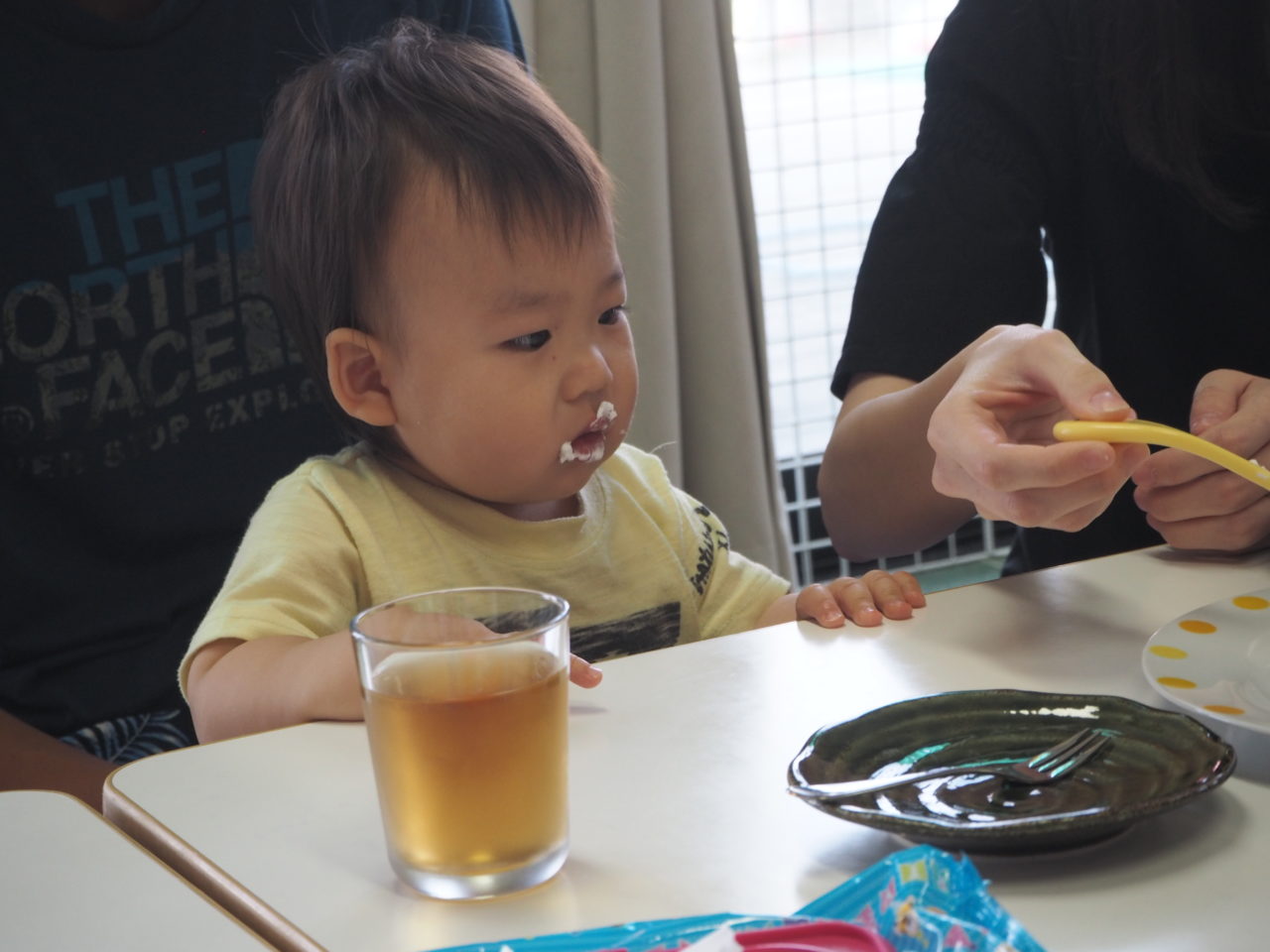 ろうそくをふーっと吹き消し、みんなでいただきますをしたらお待ちかねのおやつタイムです!?