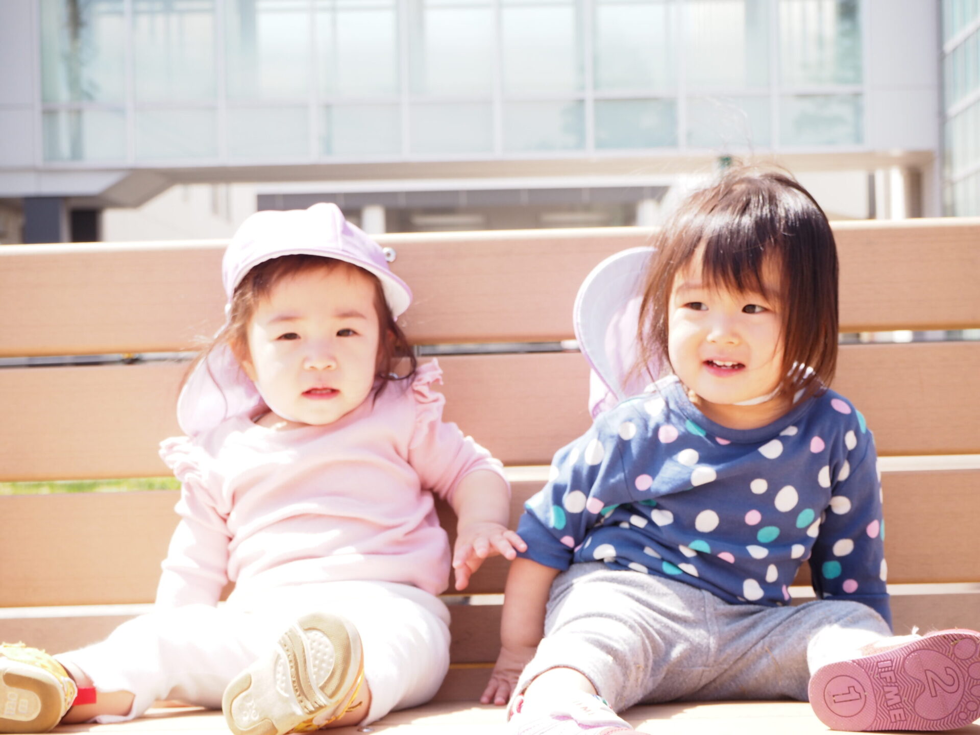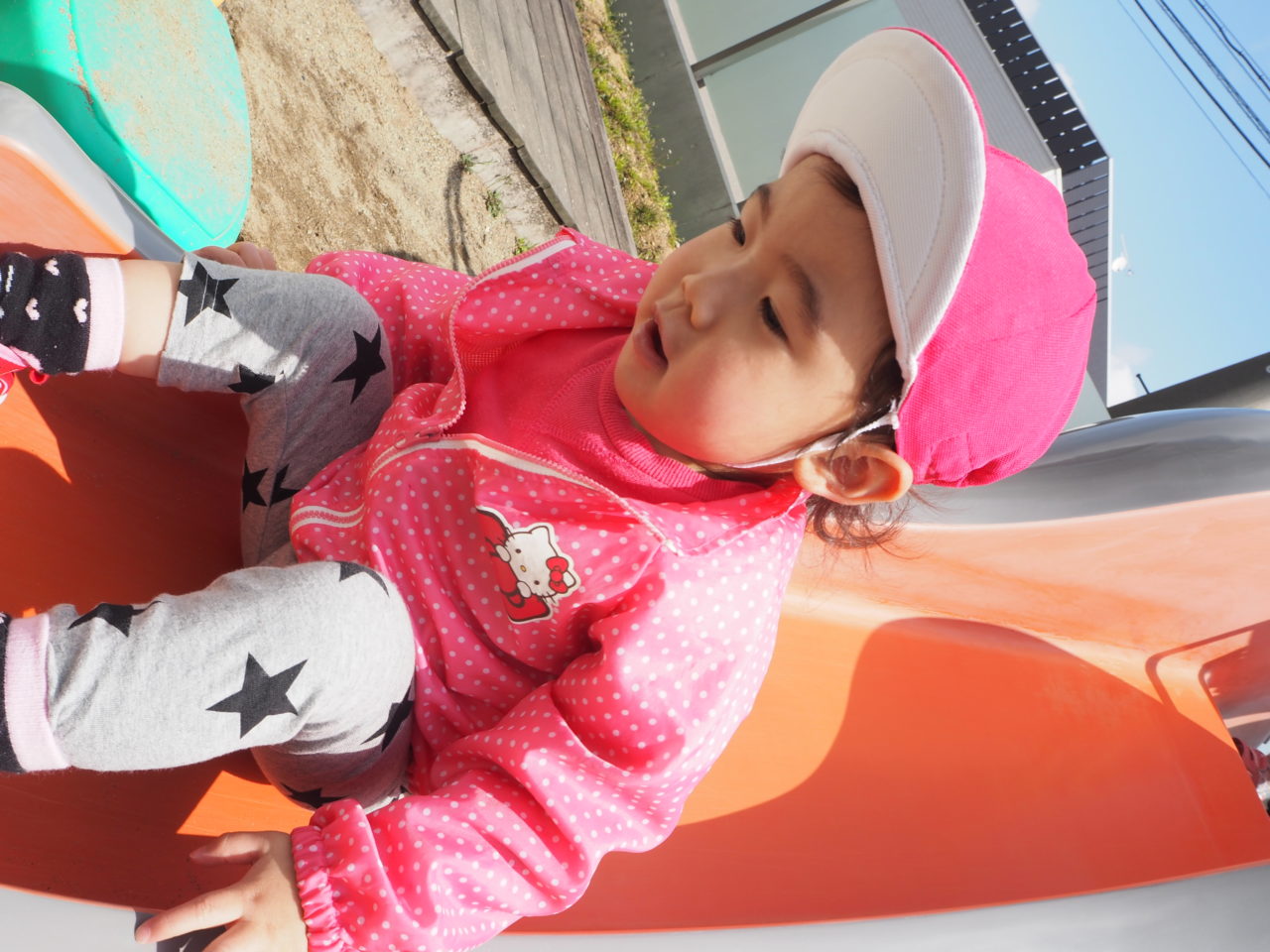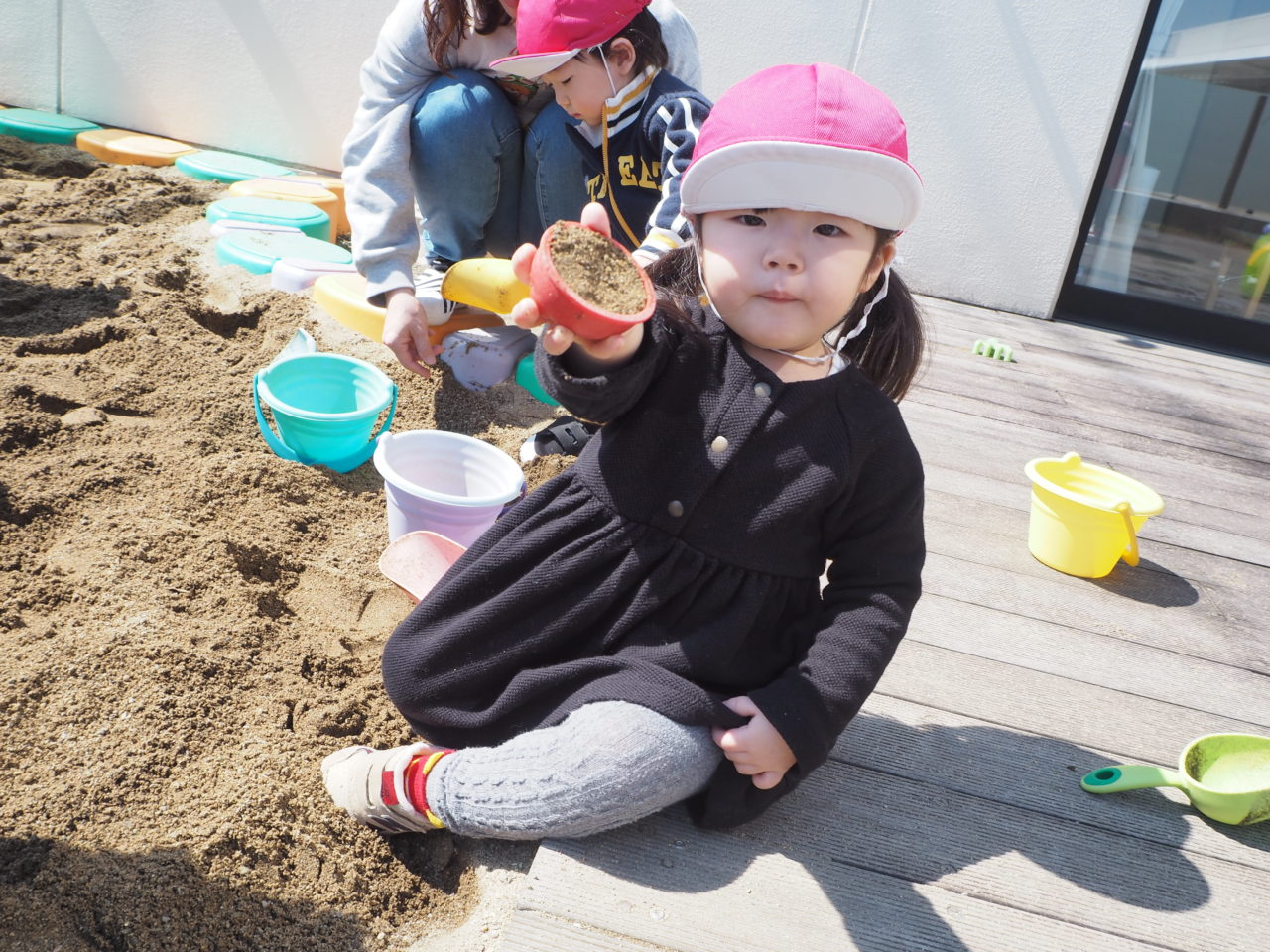 テラスで砂遊びをしたり、公園ですべり台やブランコ、かけっこをして
