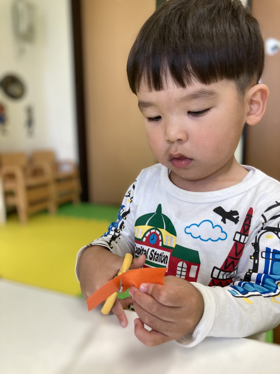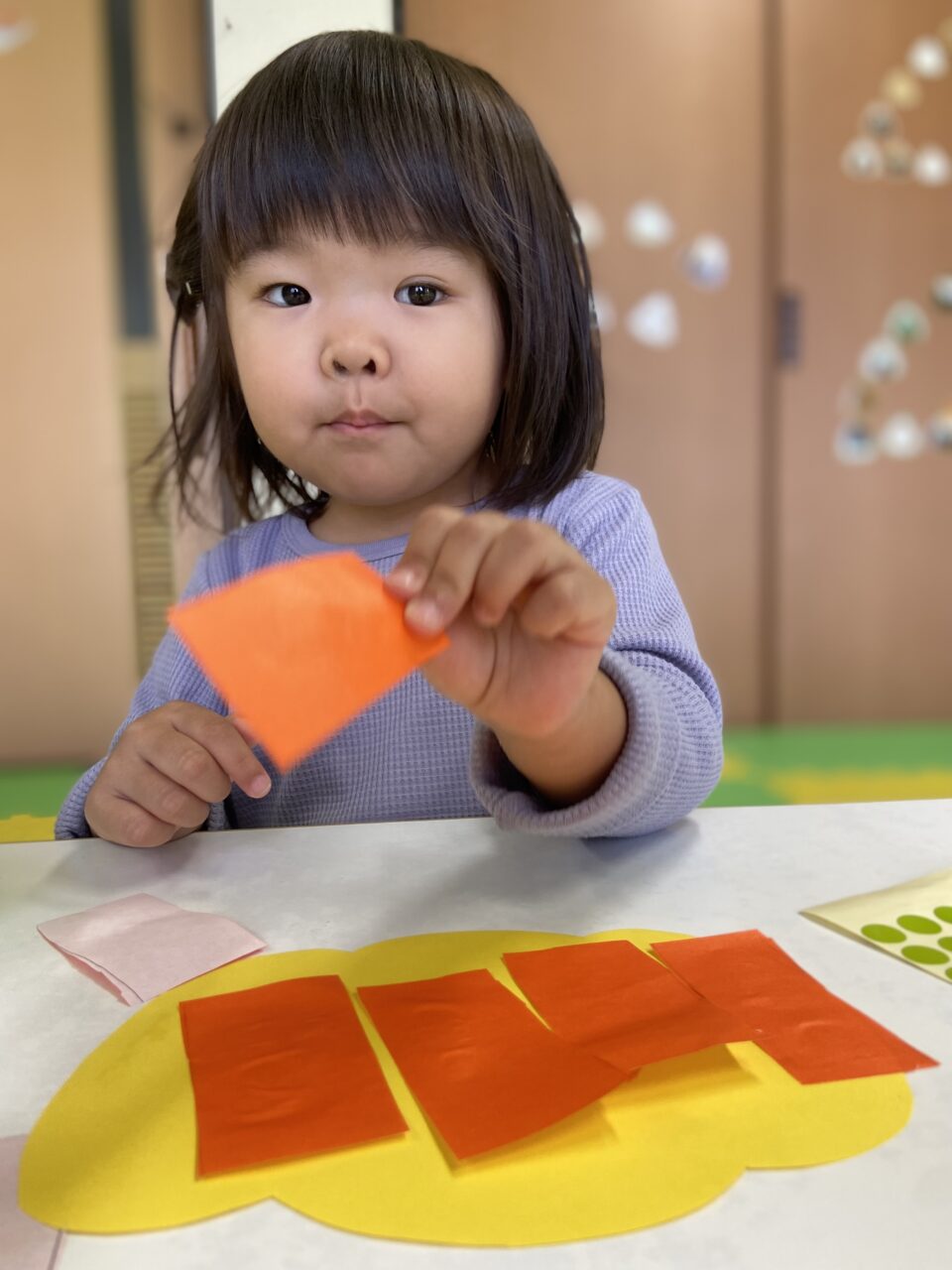 ん?帽子とお目目が貼られて、何かに変身したみたい?