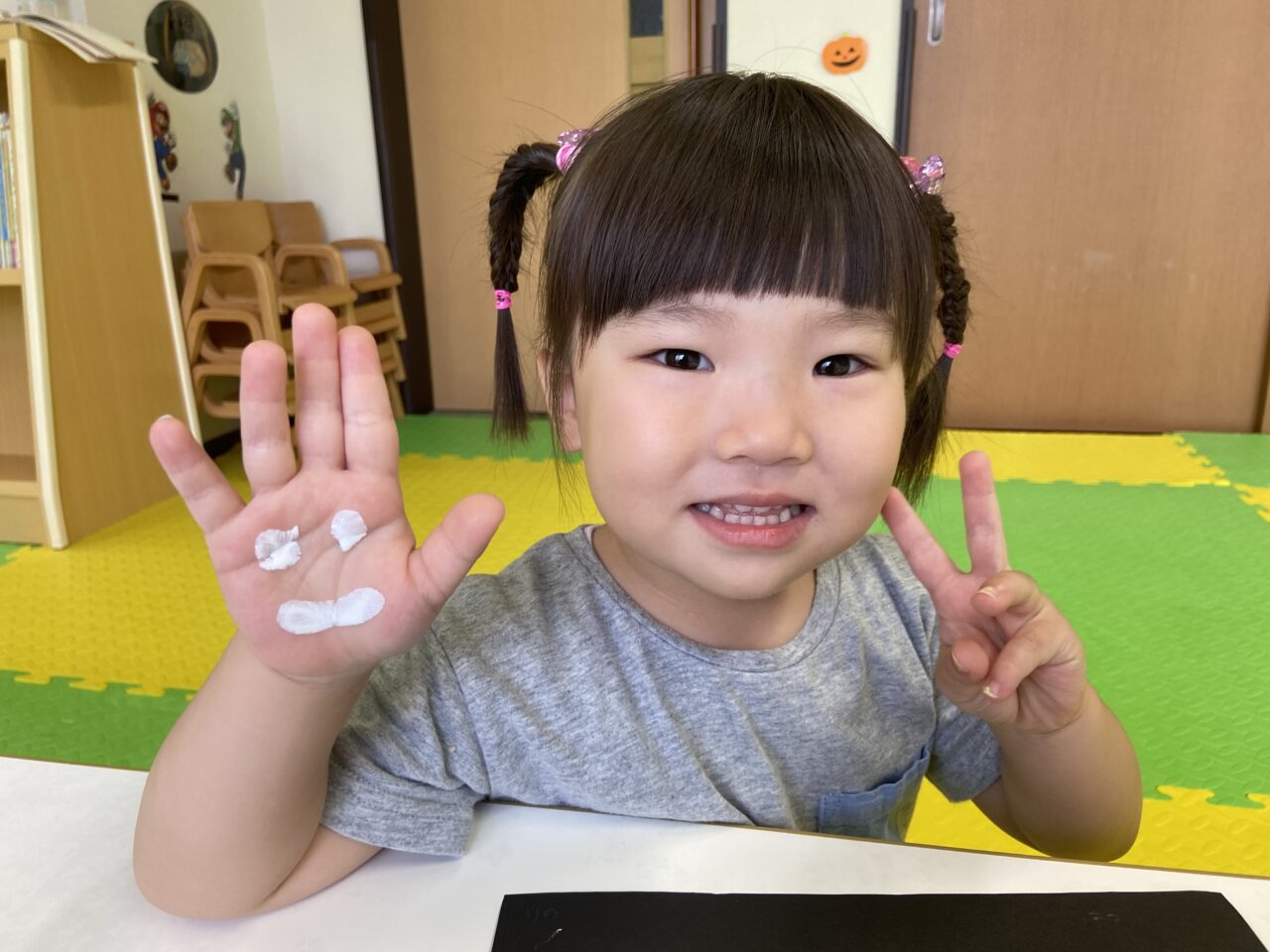 全部白く塗る前に、保育士がちょっと遊んじゃいました?