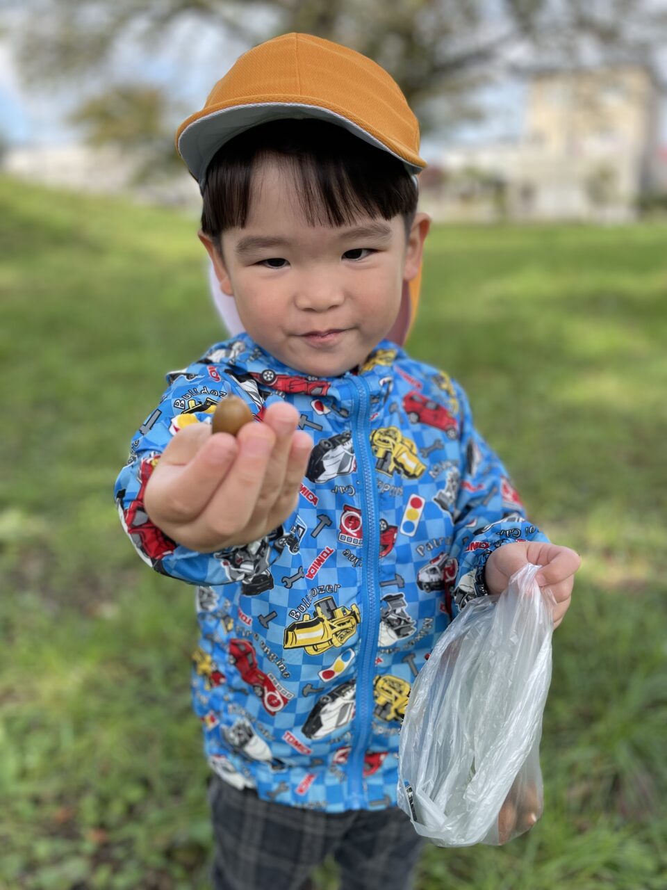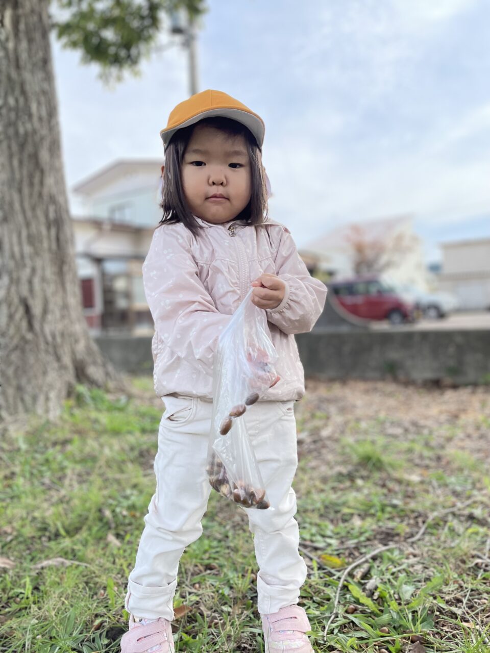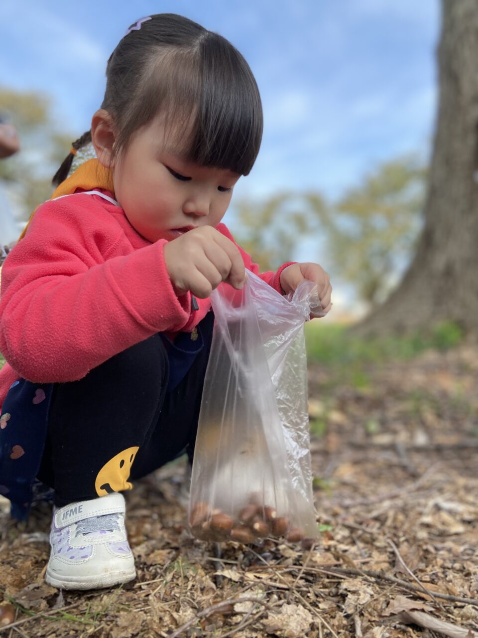 先日、園の近くにある公園で、子どもたちとどんぐり拾いをしてきました。