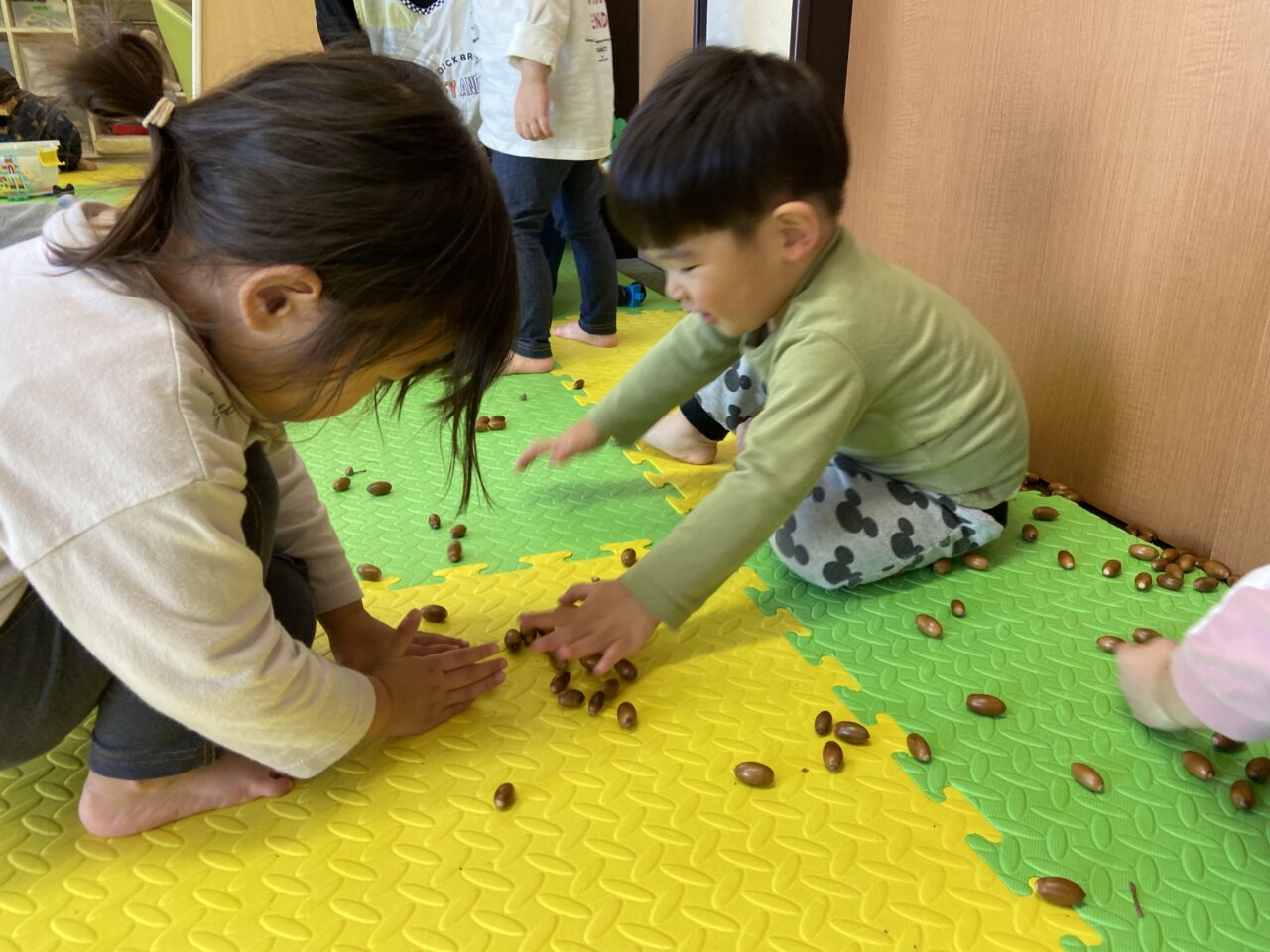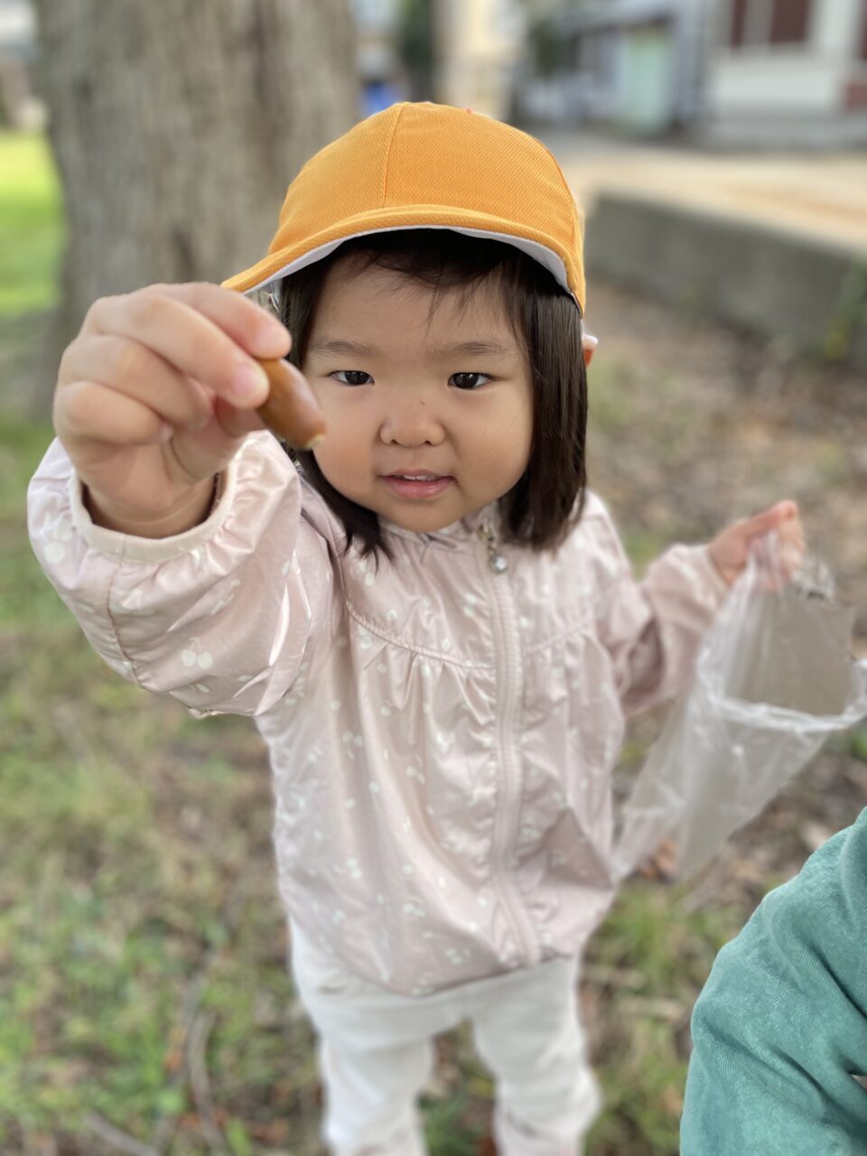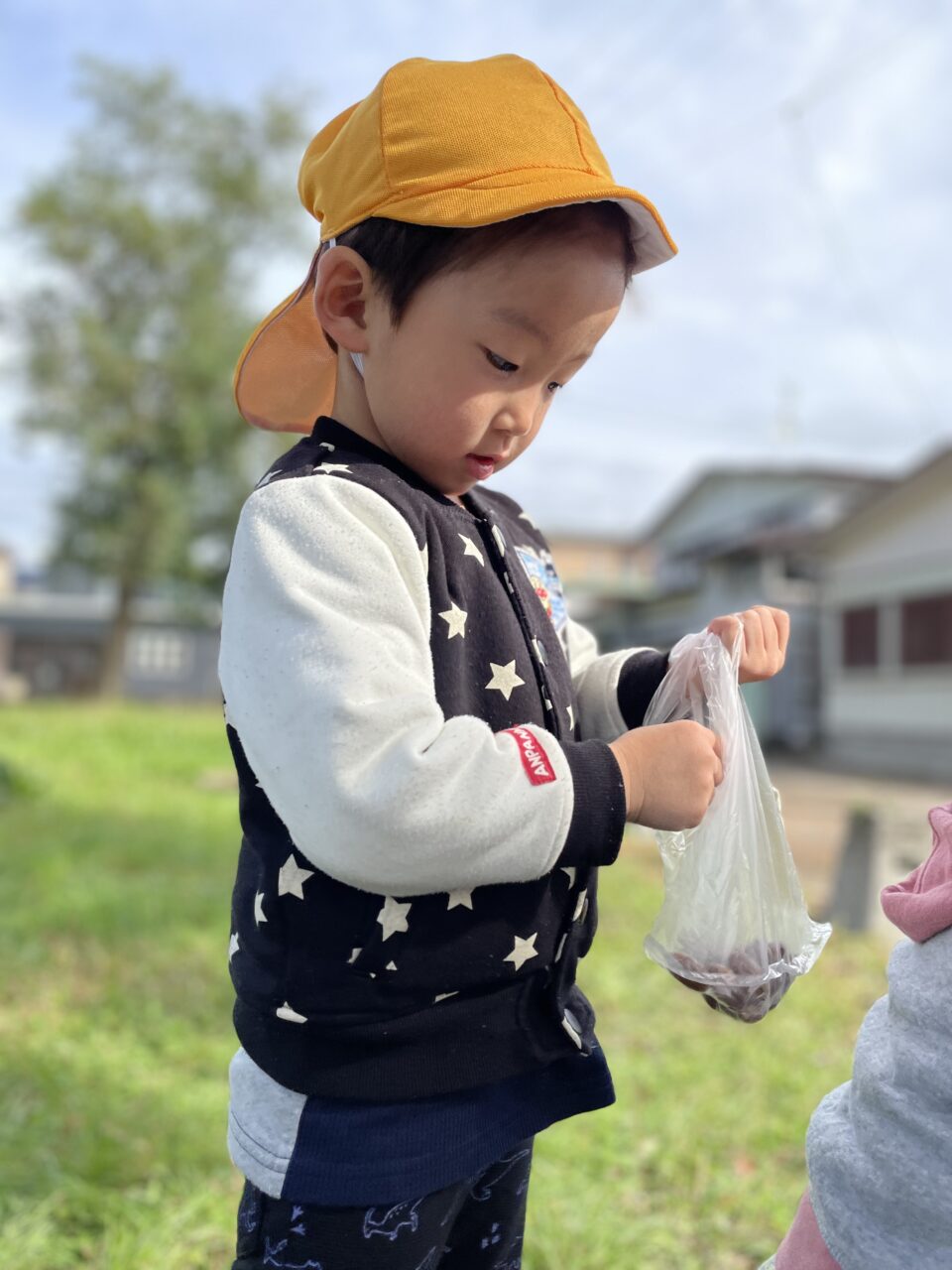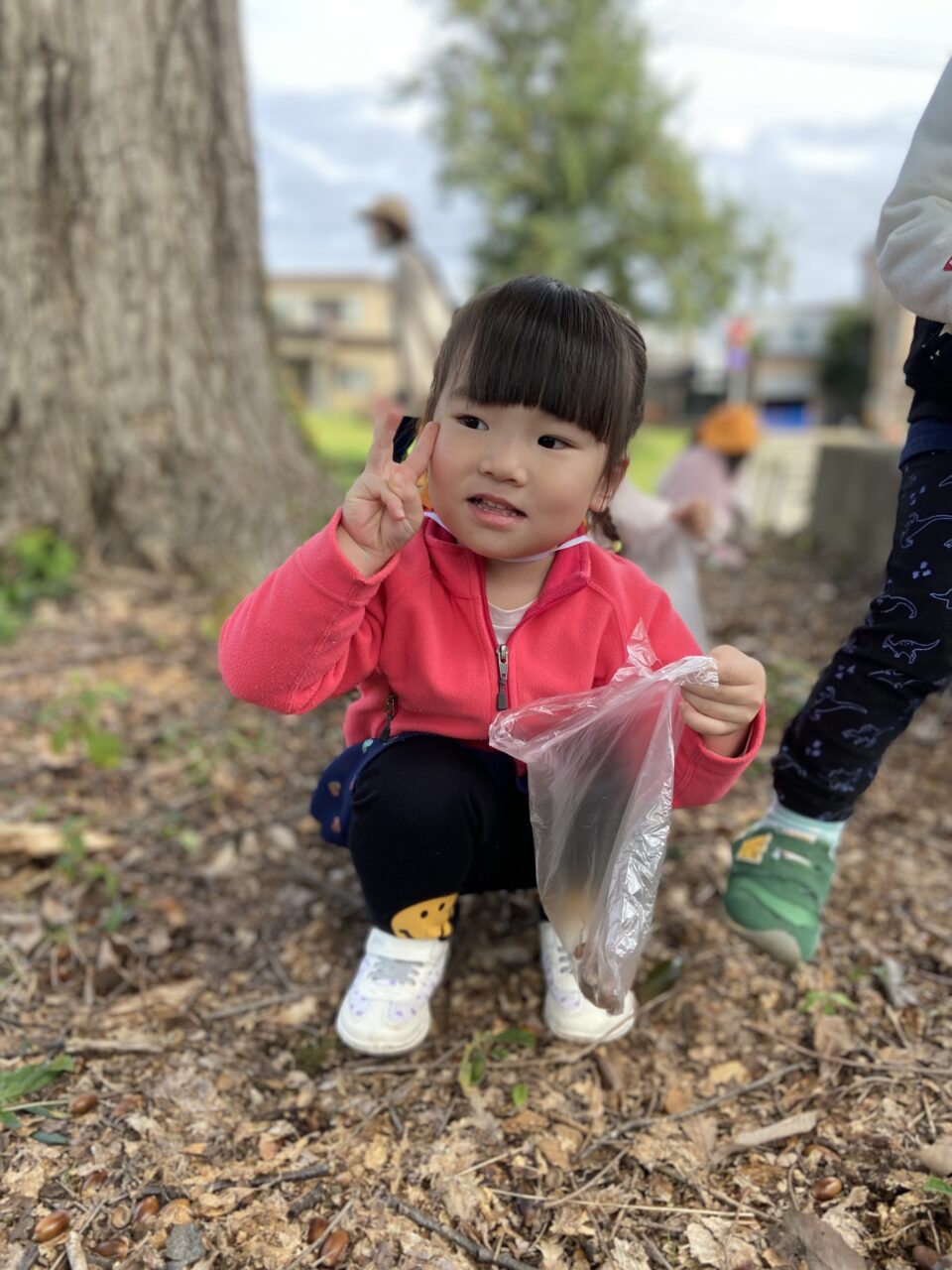 先日、園の近くにある公園で、子どもたちとどんぐり拾いをしてきました。