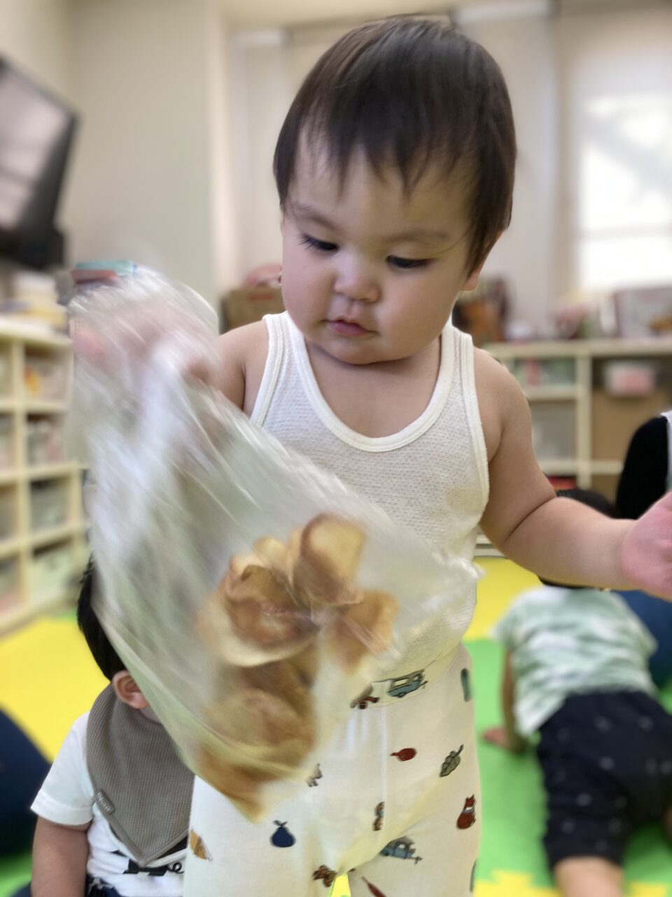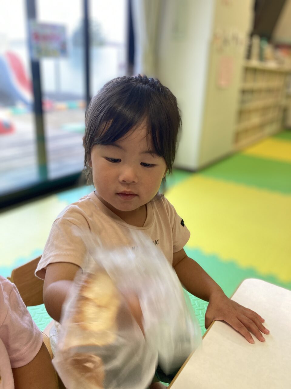こんがり揚がったポテトチップスをビニール袋に入れて