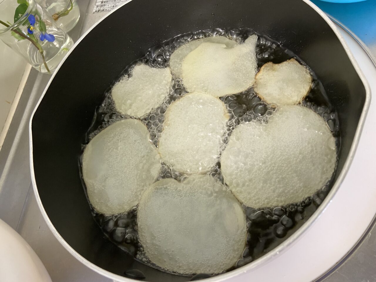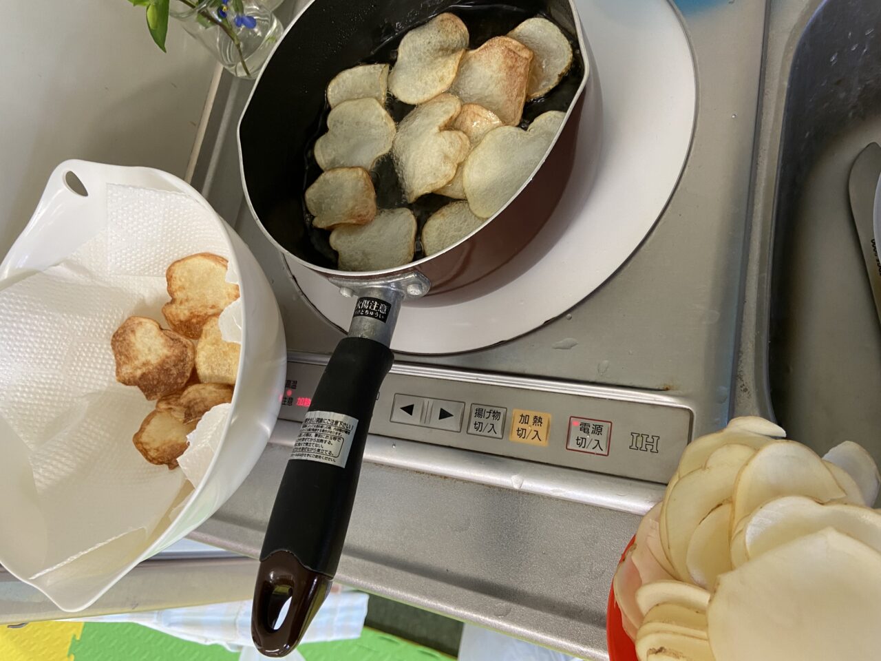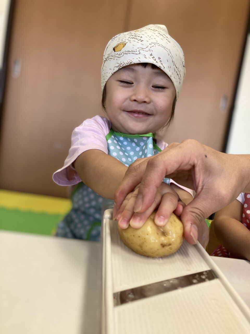 洗ったじゃがいも?を皮付きのまま、スライサーで薄くスライスしてもらいました!