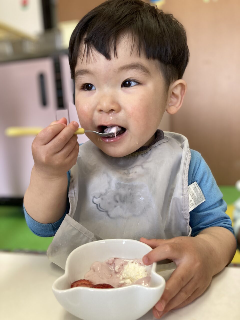 お弁当もしっかり食べ、フルーチェもパクパク食べます?