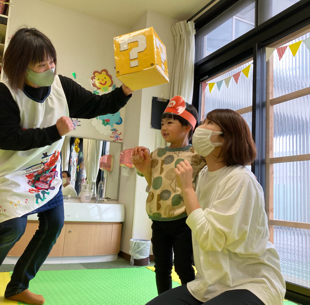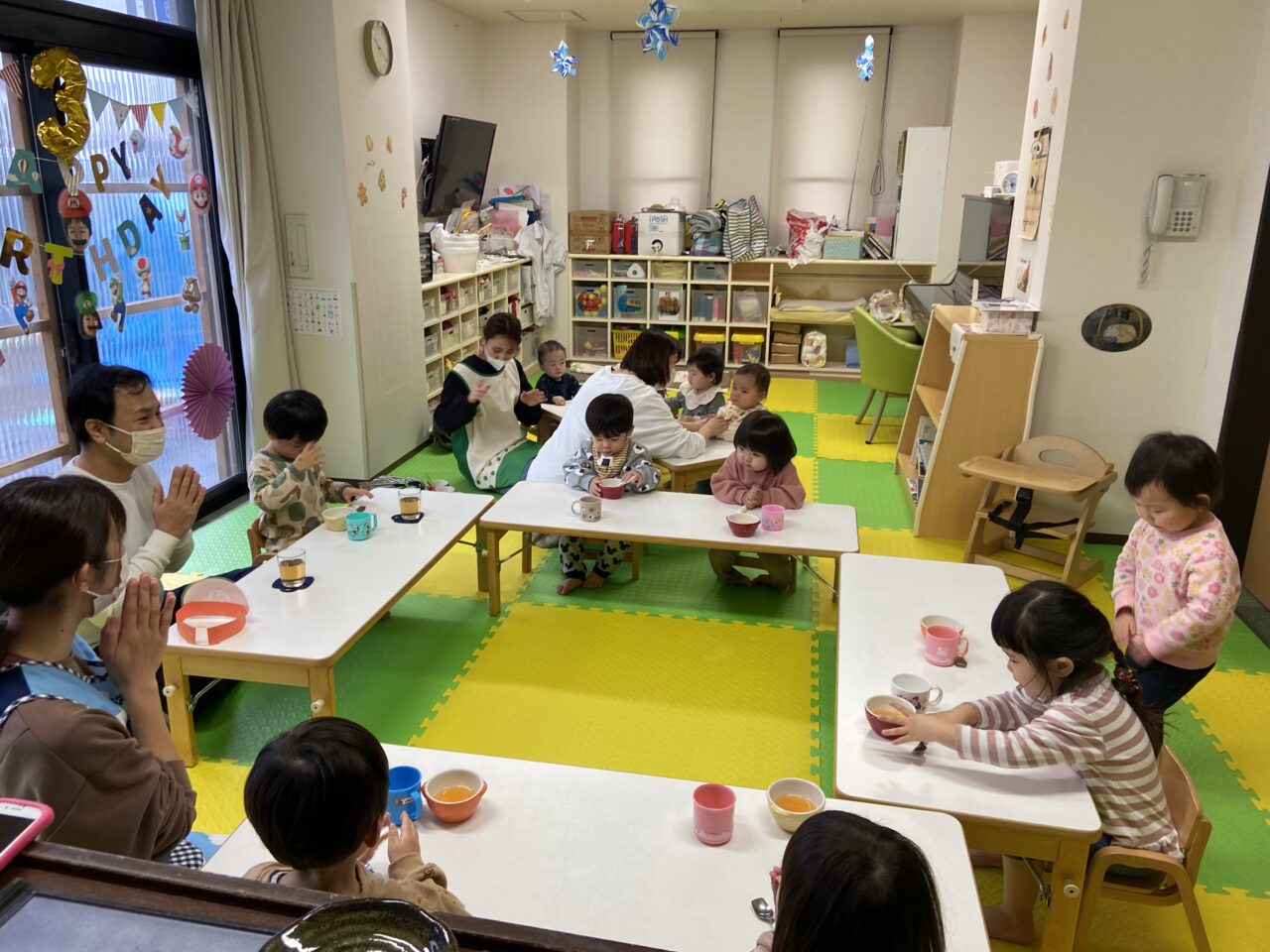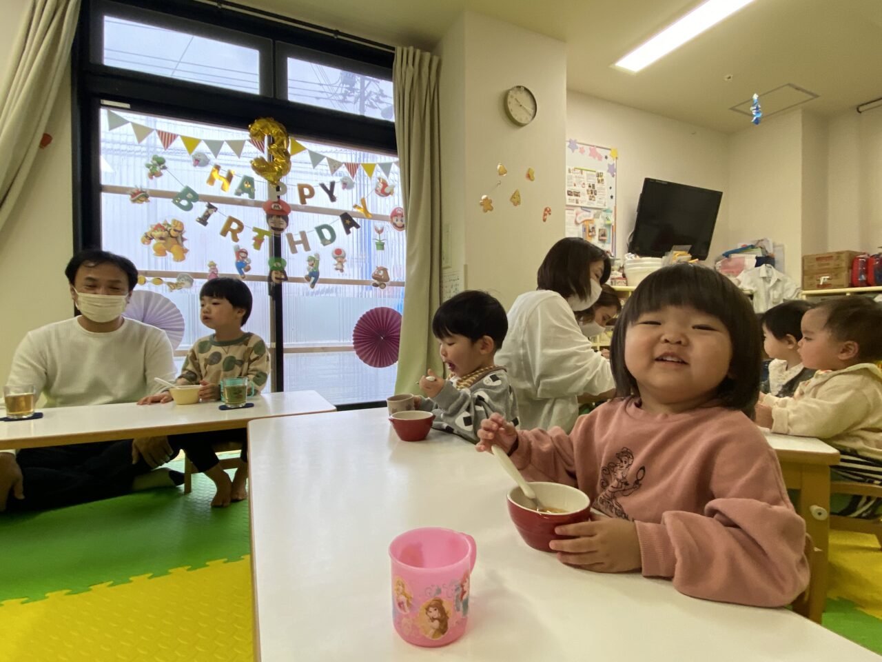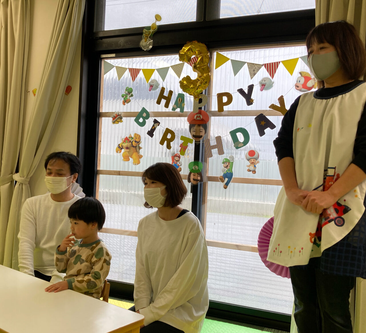 つき組の部屋が、息子の大好きなスーパーマリオの装飾でいっぱいになり、親子そろって興奮してしまいました😆
