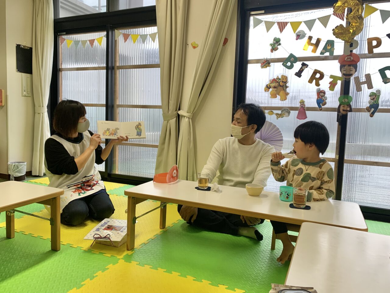 今日はまりこ先生も保護者としてお誕生日会に参加していただきました?
