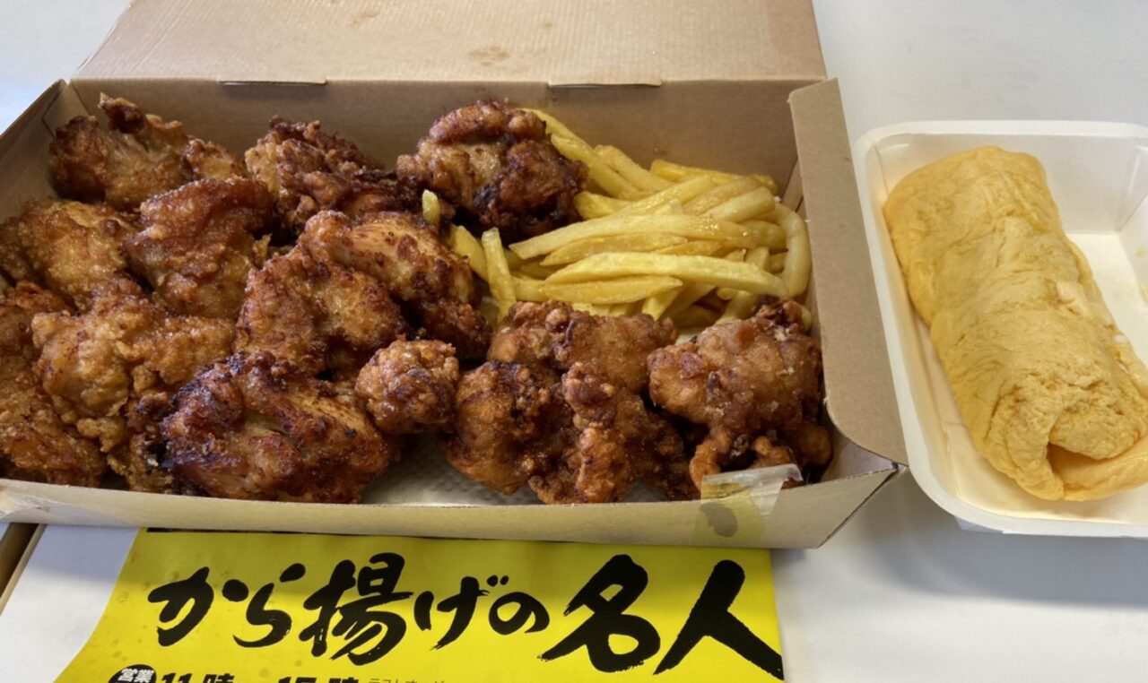 今回のおやこ くっつきプロジェクトは駅前にあります、『唐揚げの名人』さんの唐揚げと卵焼きです??