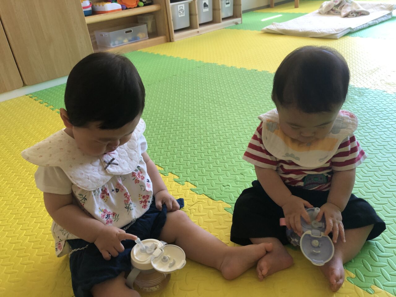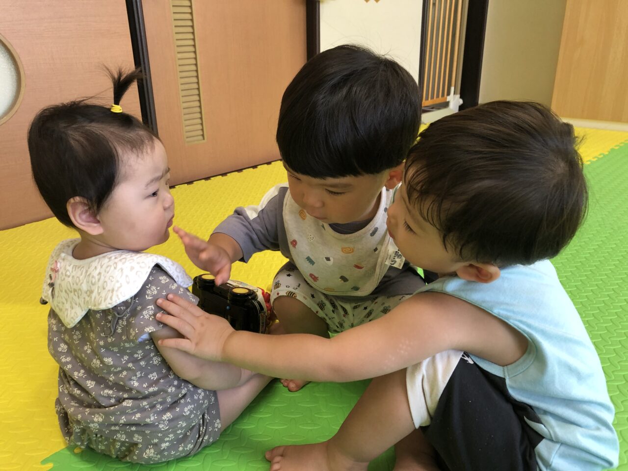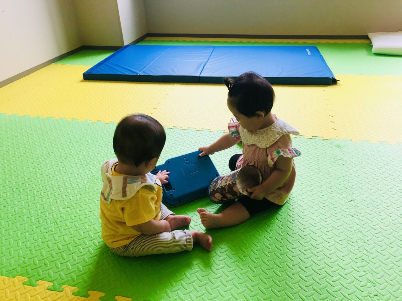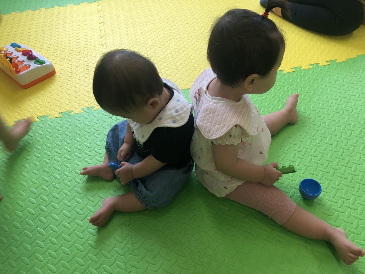 顔を合わせたり同じおもちゃで遊んだり、一緒にハイハイしてお部屋の探検をしたりと気づけば隣同士に並んでいます????