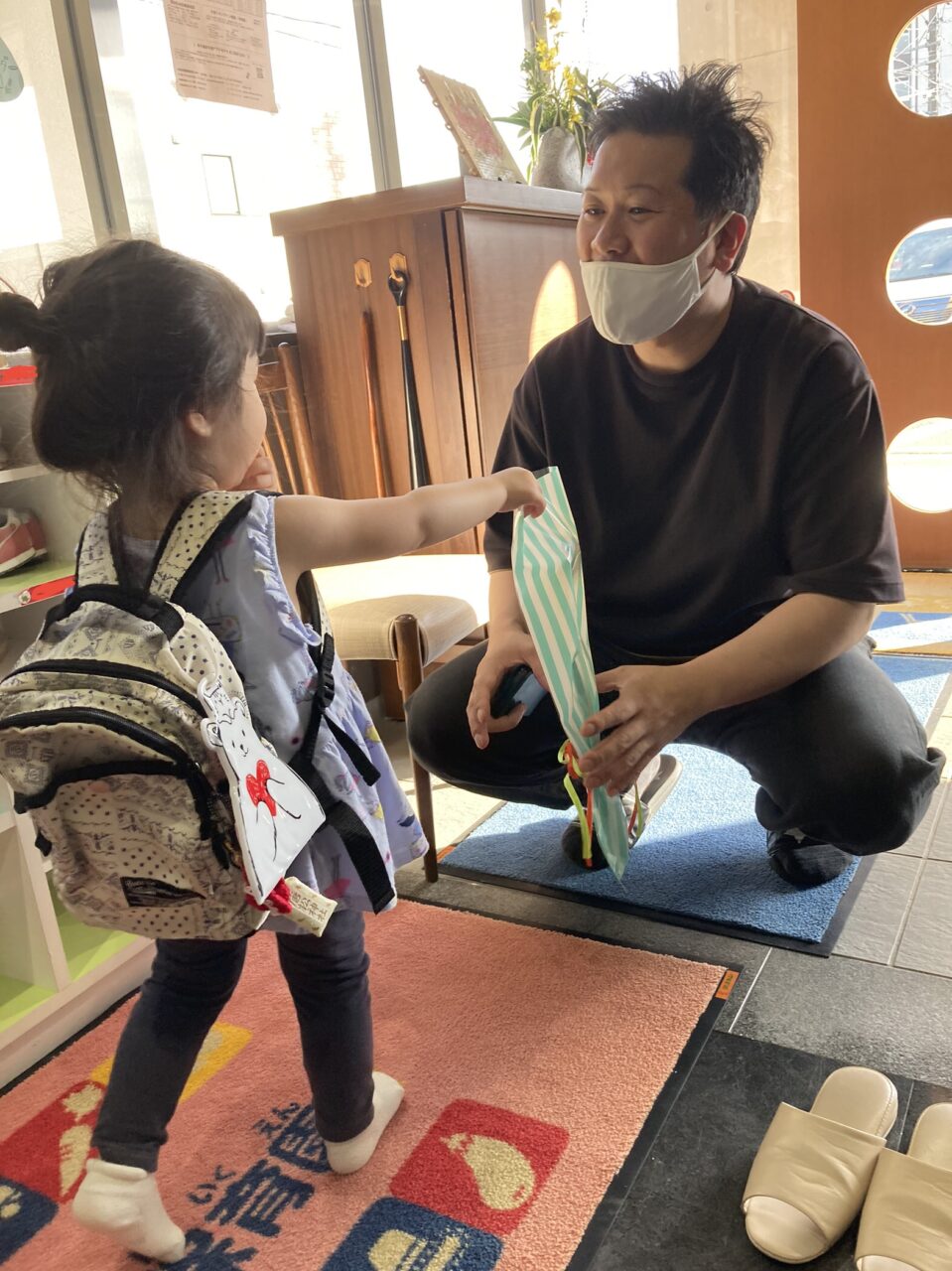 お迎えに来ていただいたお父さん方には子ども達から直接手渡ししましたよ!?