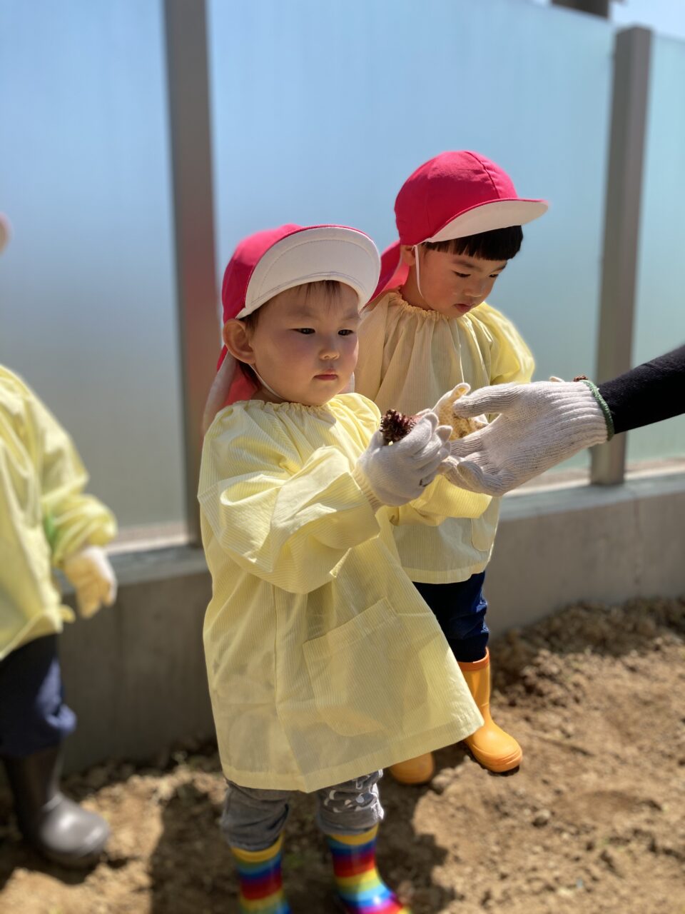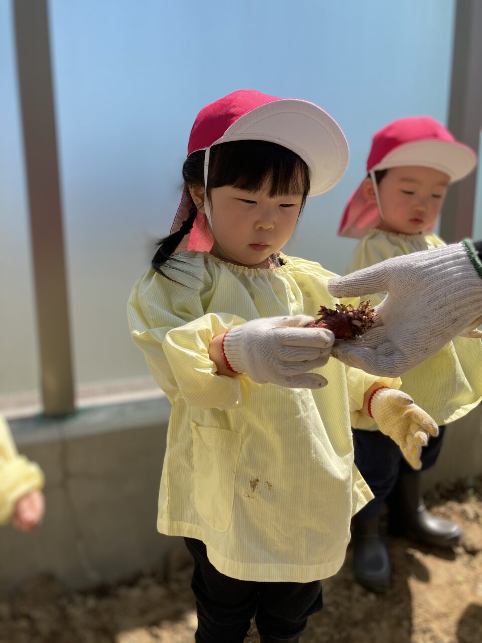 みんな不思議そうに種芋を見つめながらも、優しく手で持ってくれました??