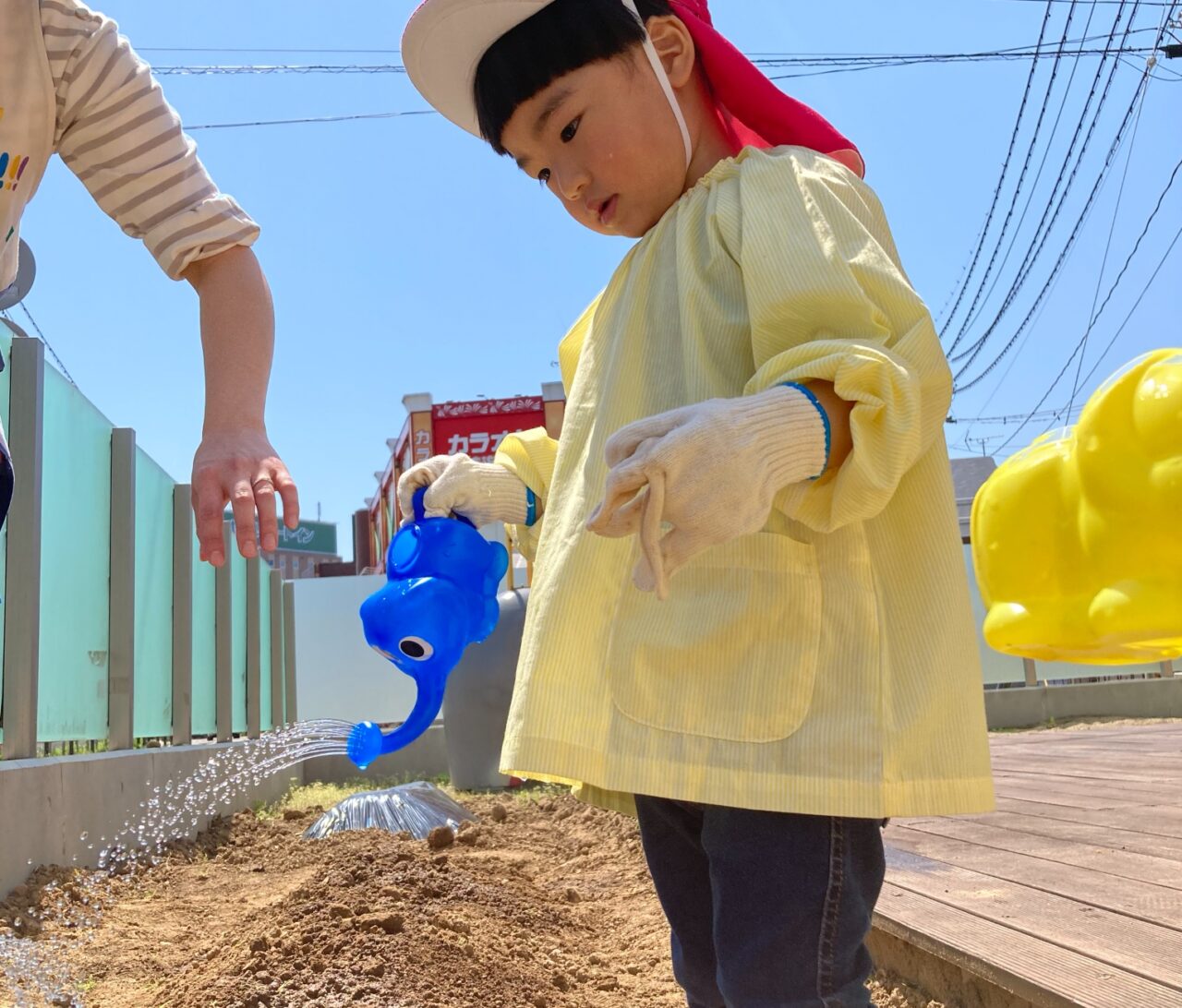 最後はお水をゾウさんジョウロでたっぷりかけて…❤️?