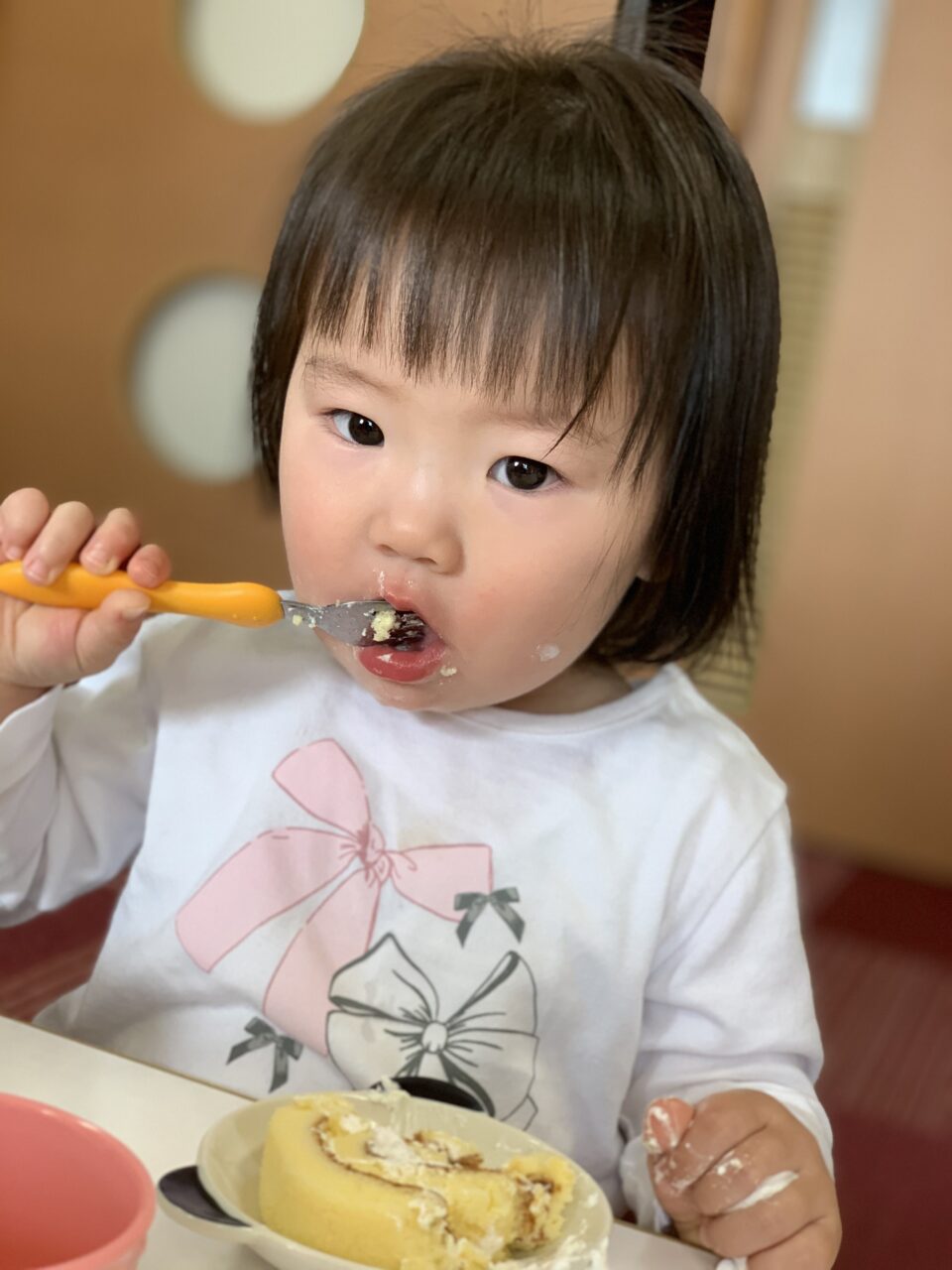 ローソクを吹き消した後は、みんなで一緒にロールケーキを食べましたよ?