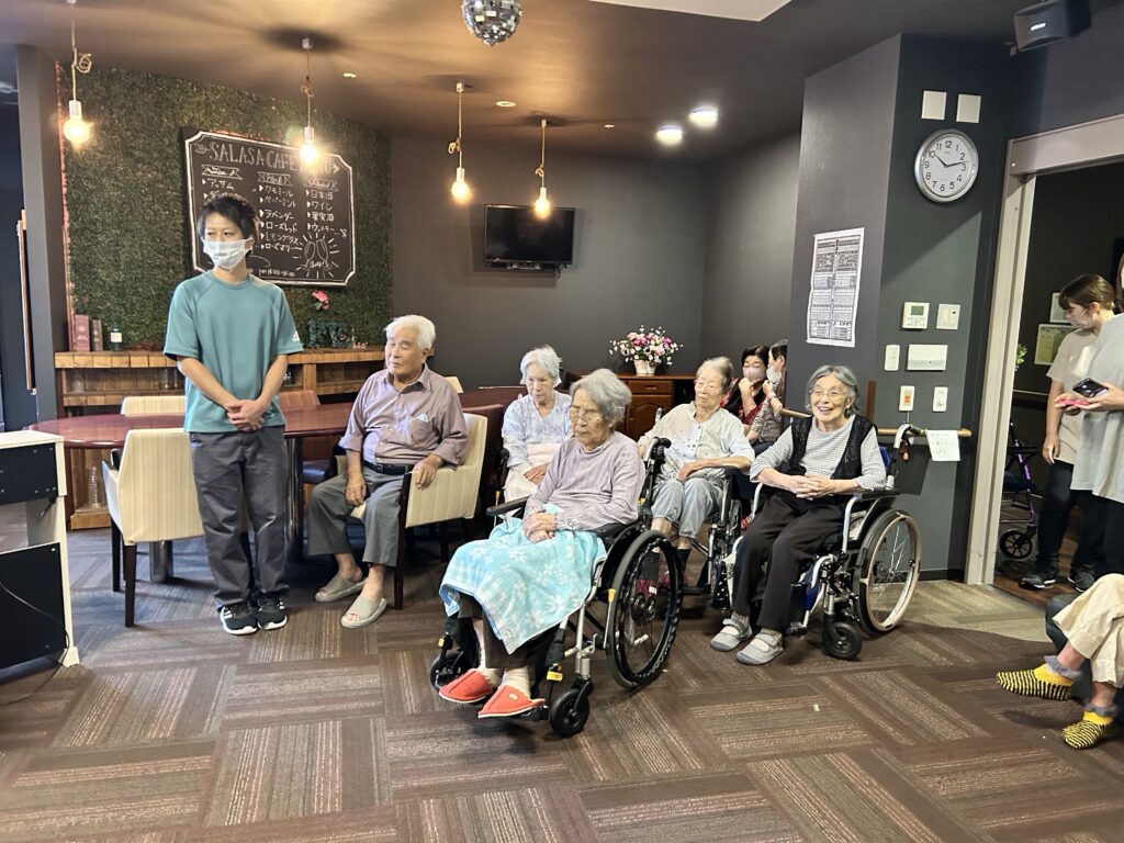 久しぶりのラウンジ…そしてたくさんの利用者さんの前❗️ということで緊張するかな?と思って見守っていた私達でしたが、いつも声をかけてくれる利用者さん達の温かい雰囲気と、舞台慣れをしているきらきらっ子達に、そんな心配はいらなかったようです?❣️