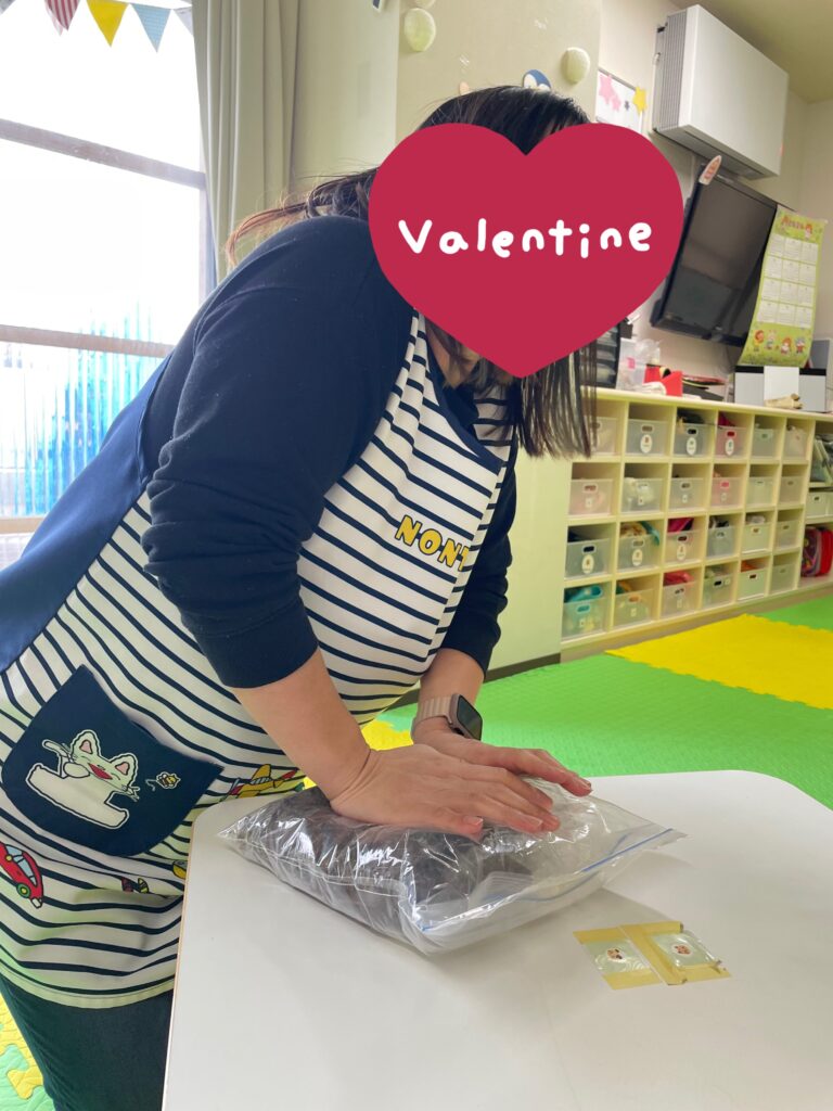 まずは、保育士がチョコレートを割りますよ〜✊?