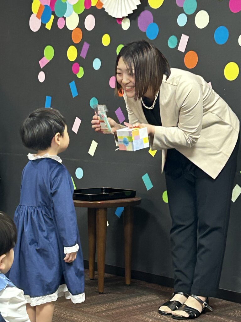 先生たちの心のこもったお祝いの風景になぜだか涙がポロリです😢うれしい旅立ちなのですが、寂しい。寂しいけどうれしい!感情が忙しい!!😢最後の最後まで、きらきらっこを想う気持ちが伝わってきます💗(おまじないのマシュマロも本当に愛を感じます💗)いつでもきらきら保育園での生活を思い出し、新しい場所でも、素敵な思い出を作ってほしいですね!ずっと応援しています―!