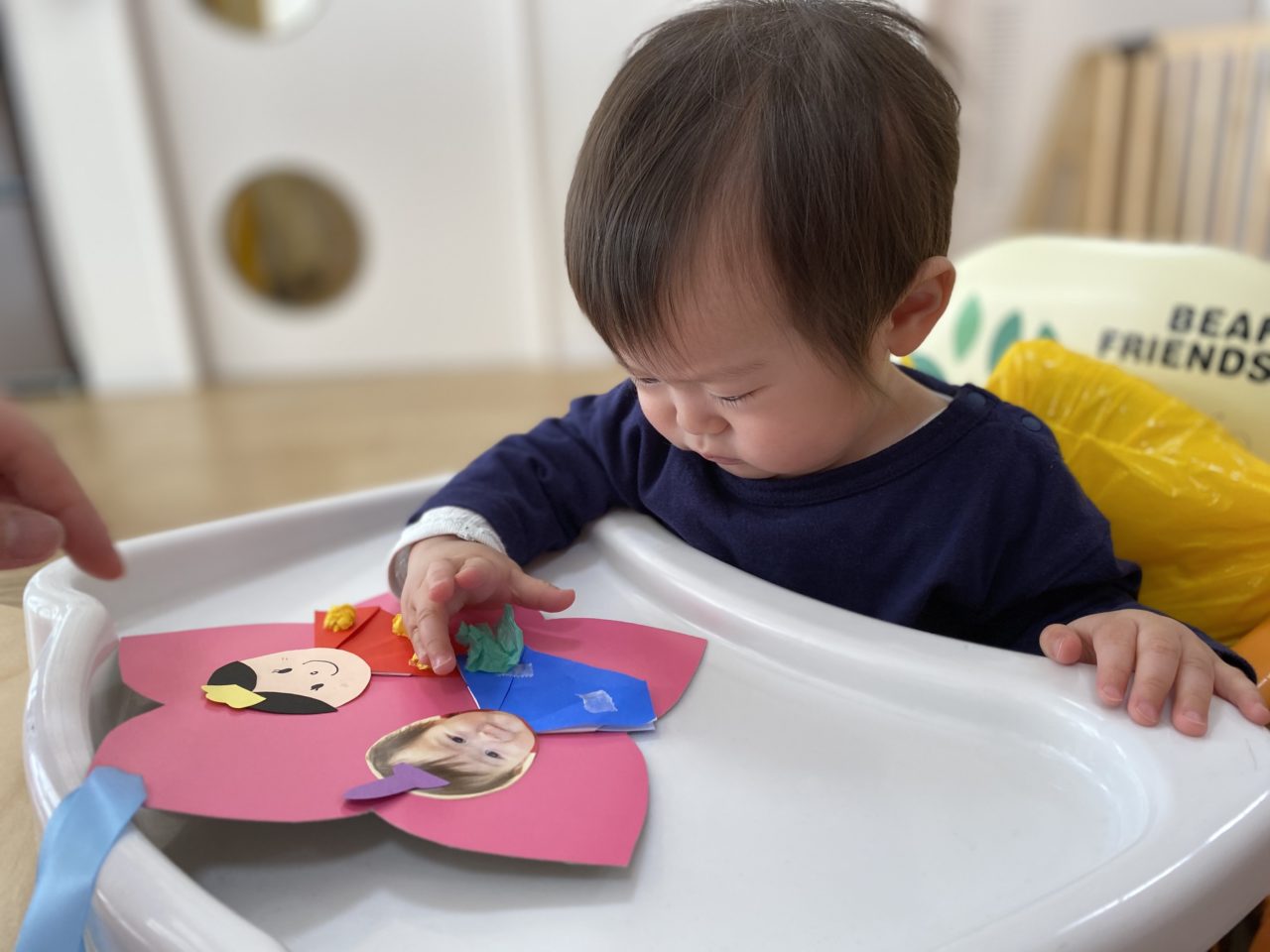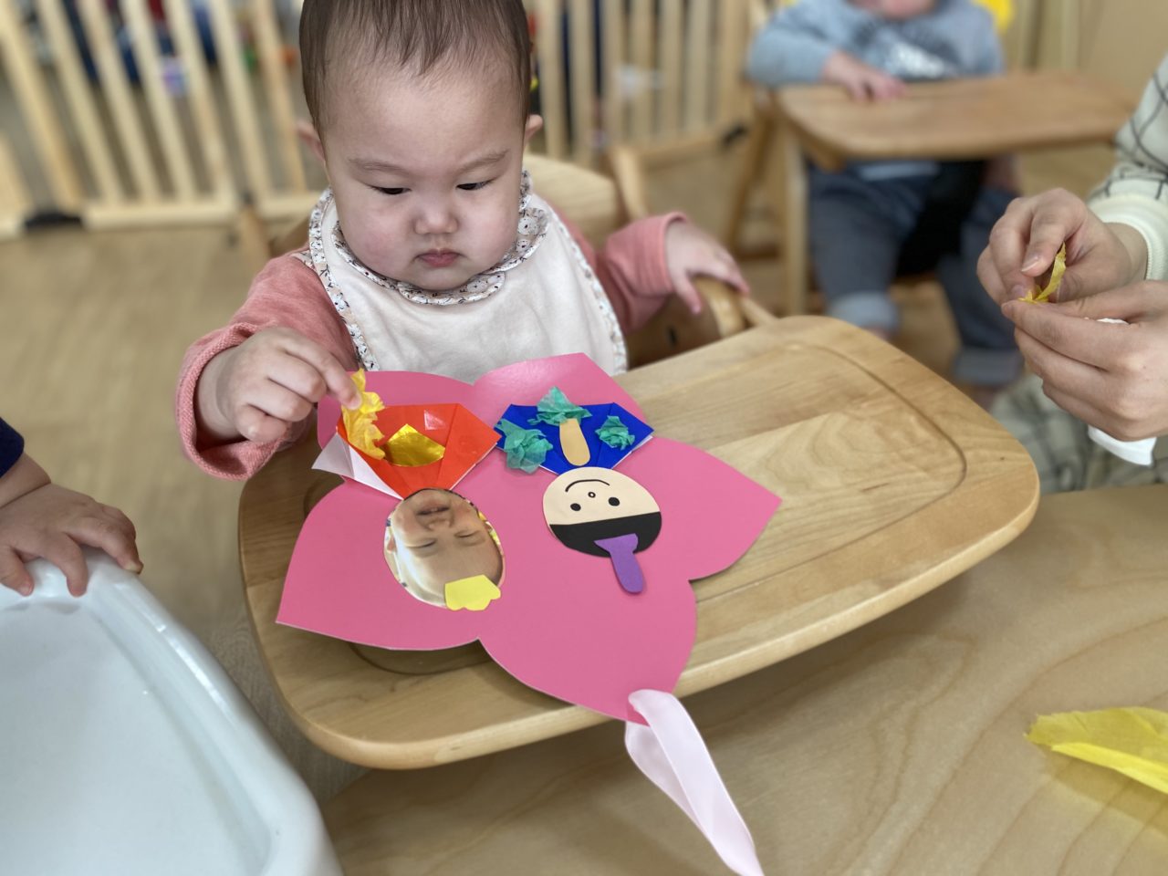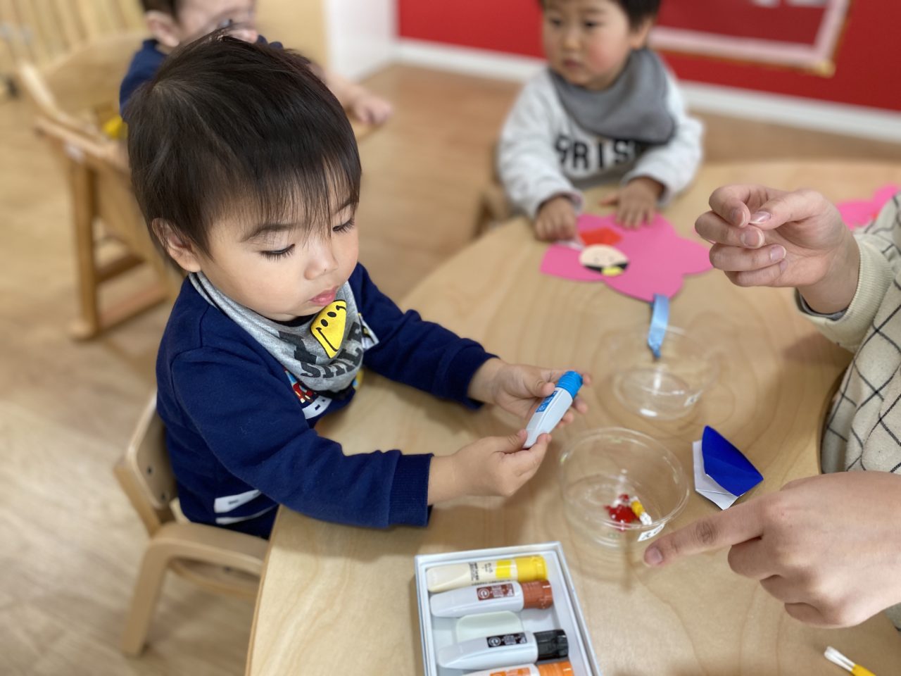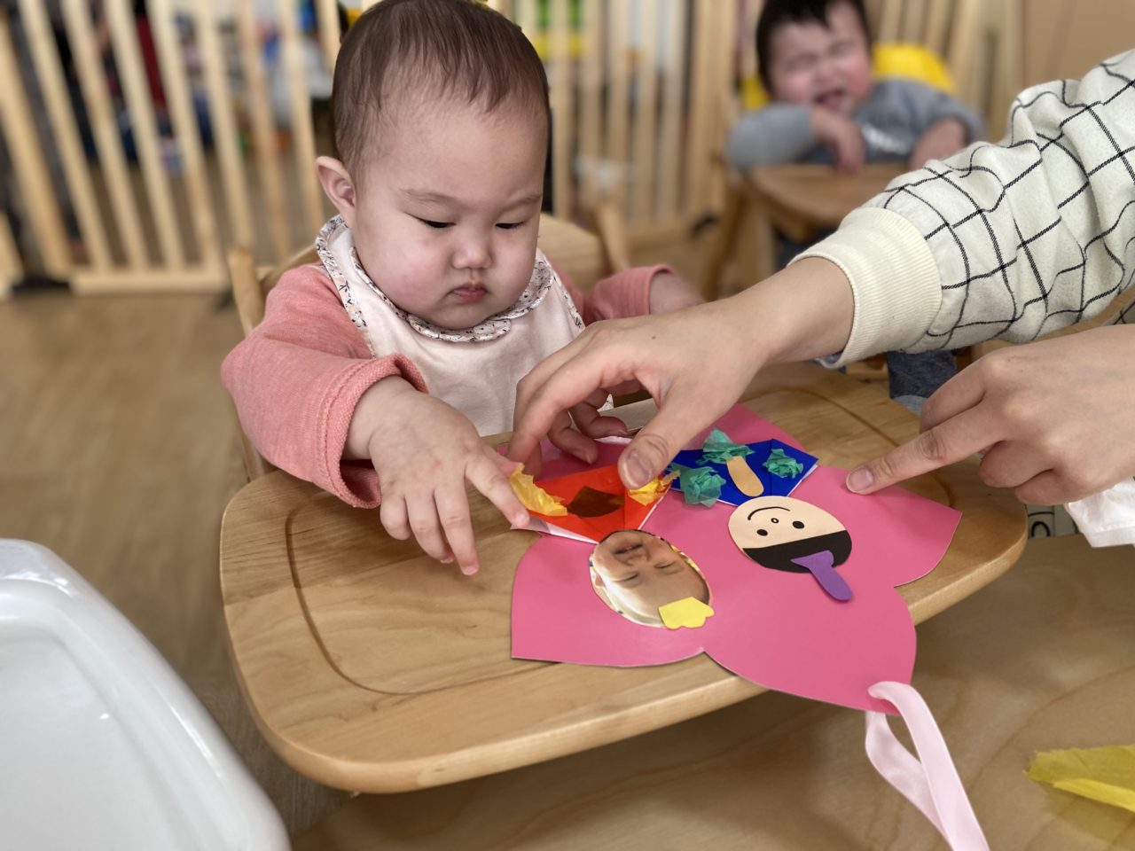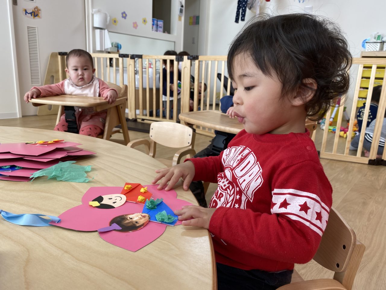 小さいクラスのほし組さんはお花紙を丸めて着物に貼りました⭐️