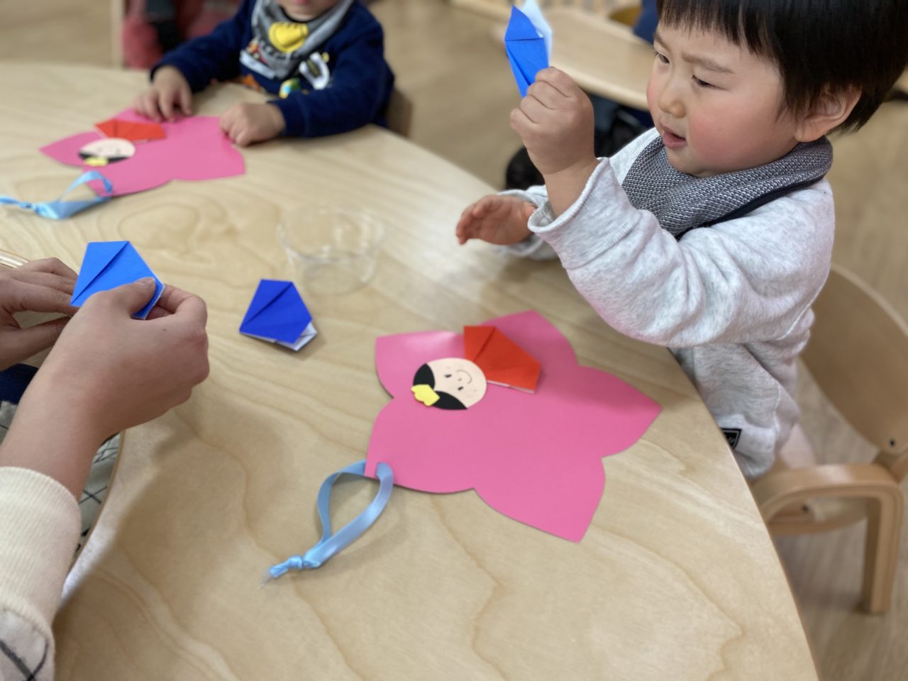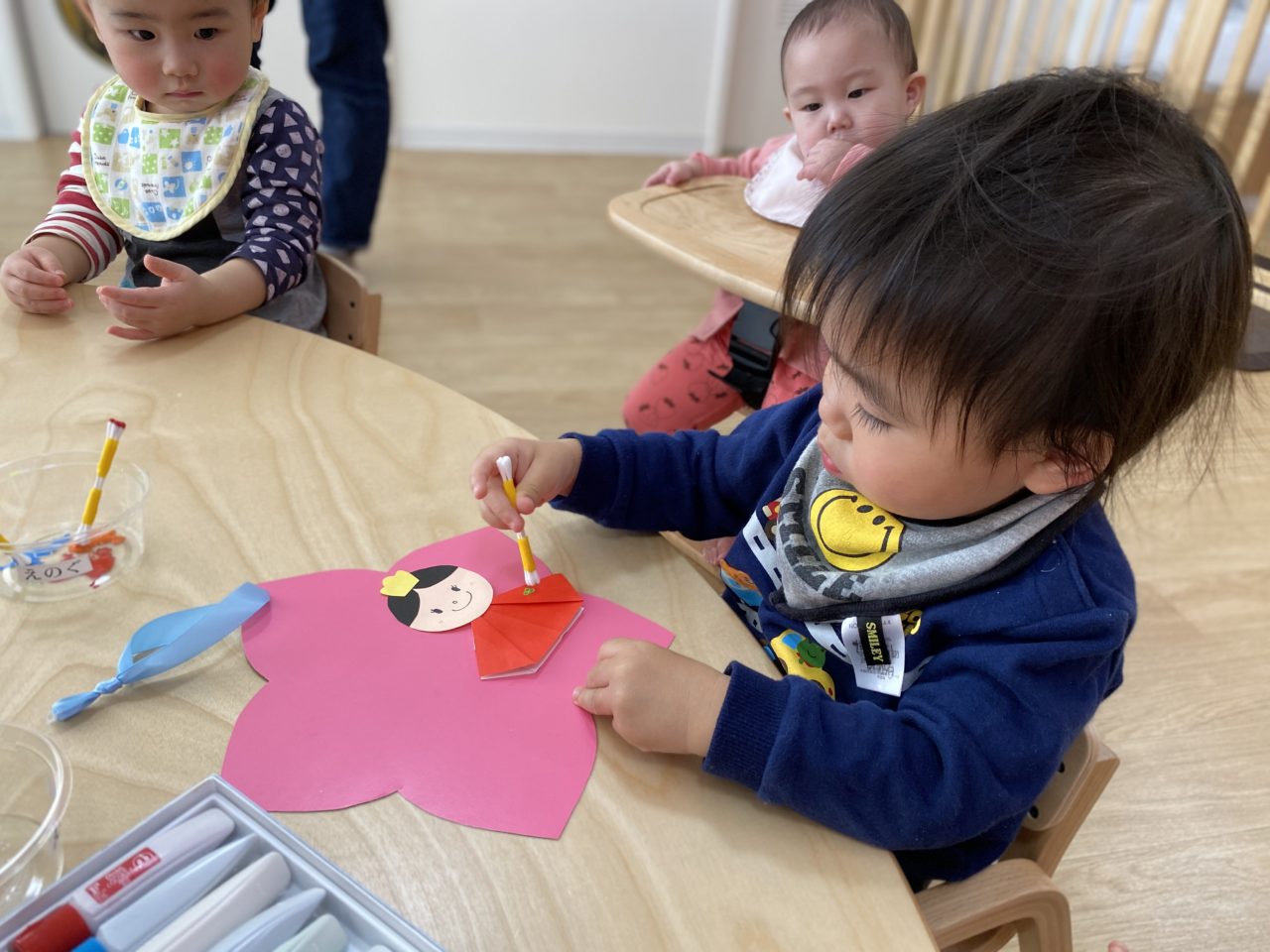 今日はひなまつり会を行い、みんなでお雛様を作りました♥️