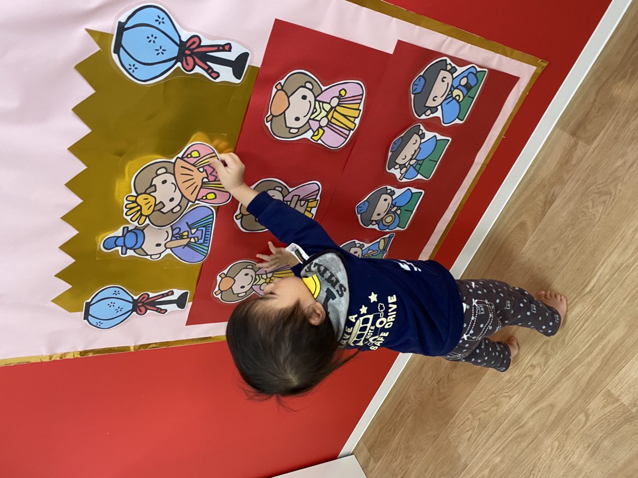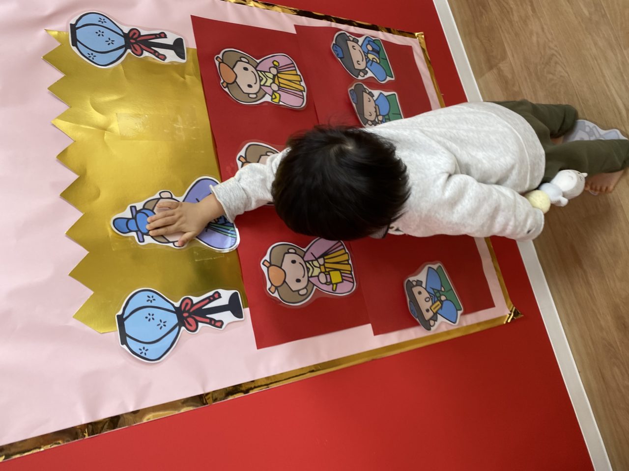 みんなでお雛様たちを探して元の場所に貼っていきます✨