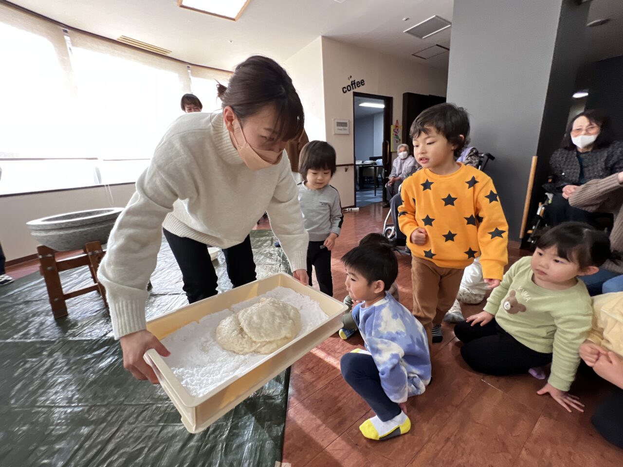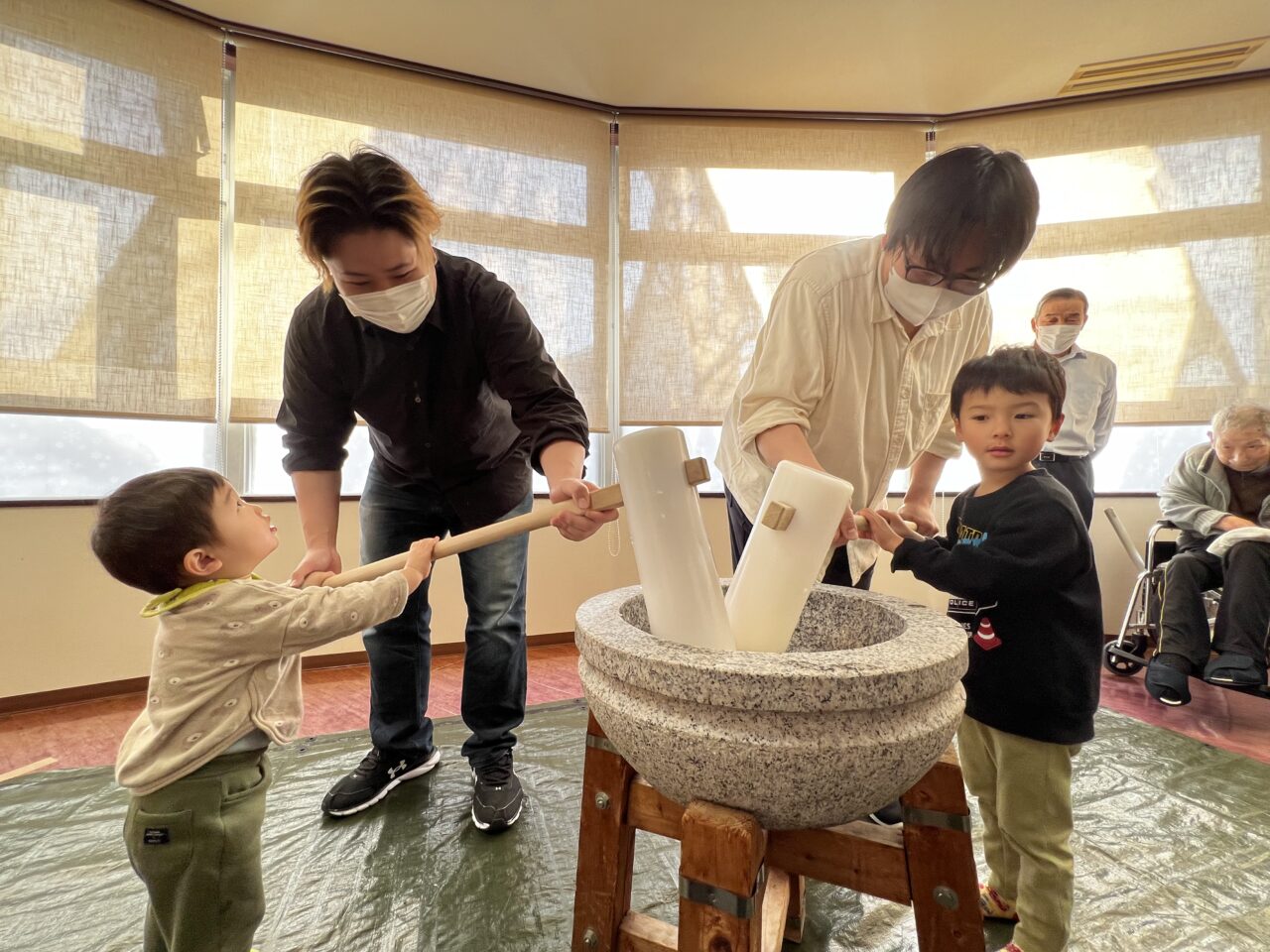 お手伝いして頂きながら、もちつき体験です!!