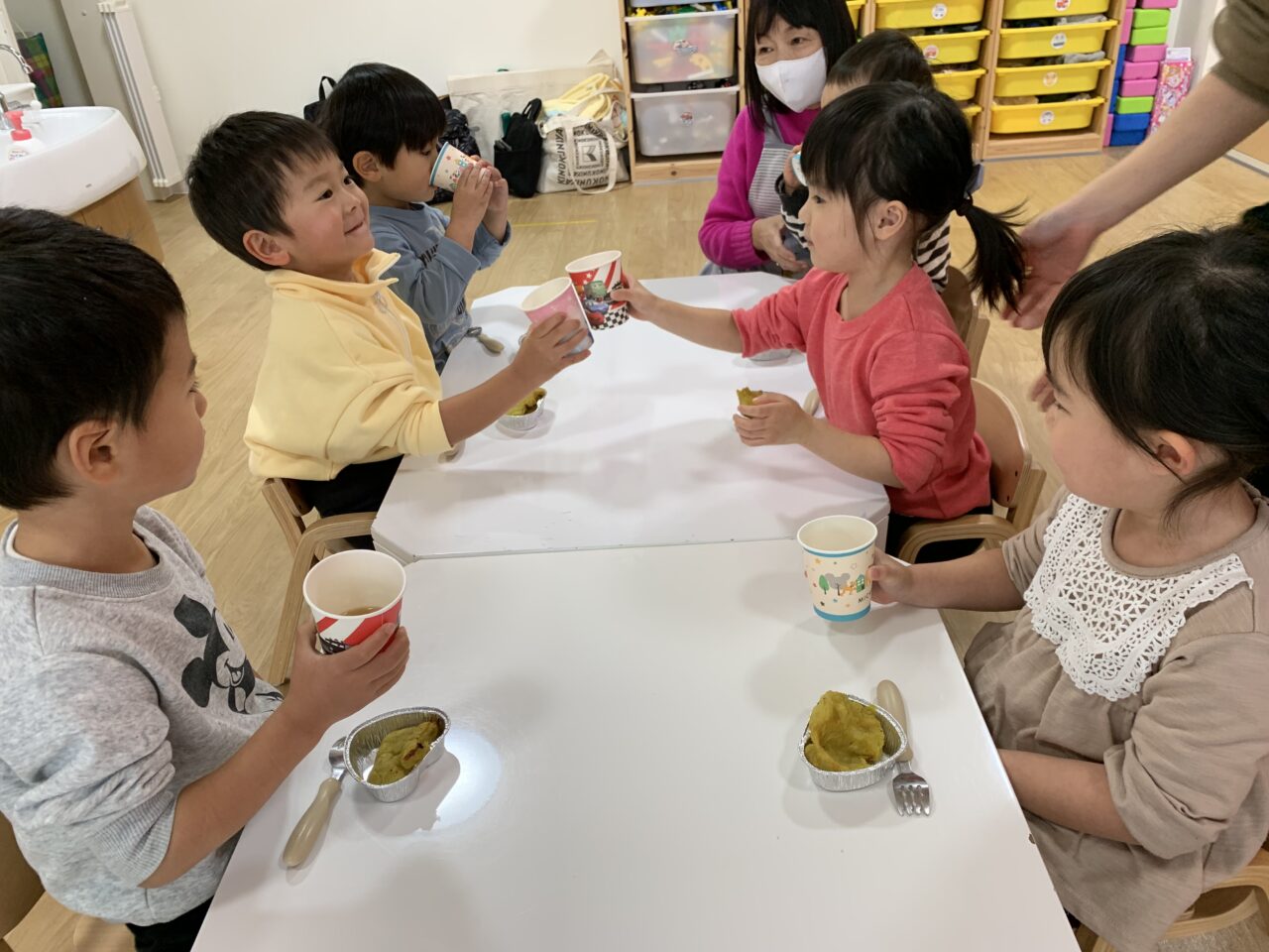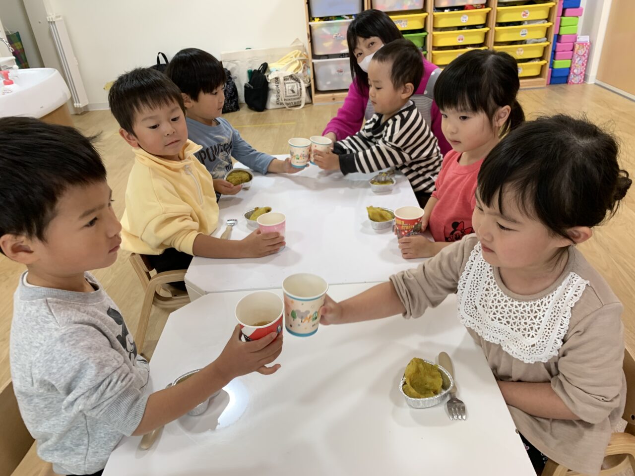 自分たちで作ったスイートポテトで乾杯!!