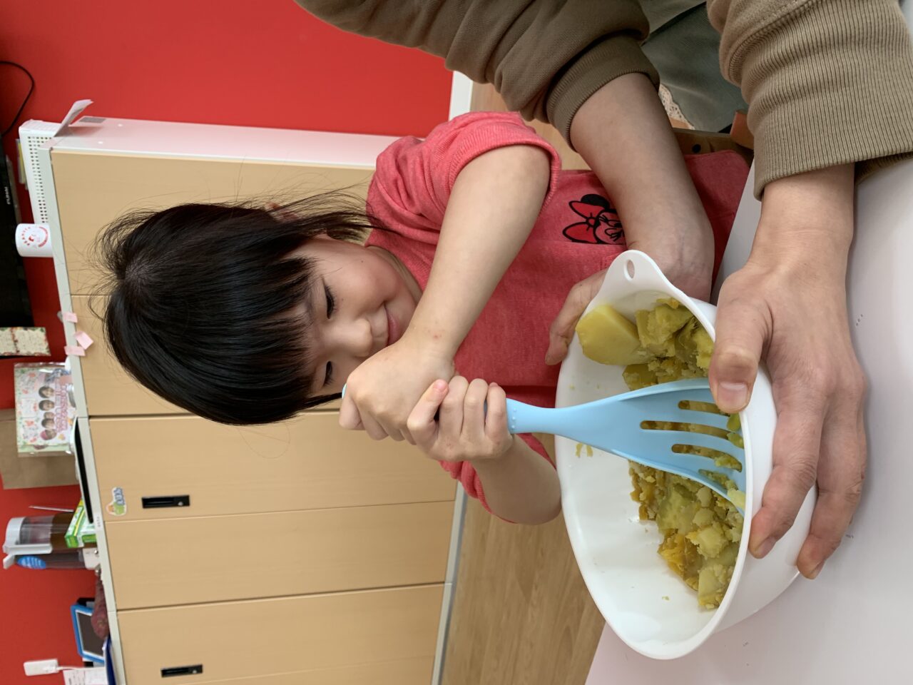 次に柔らかくした、おいもをみんなで潰してみました?❗️