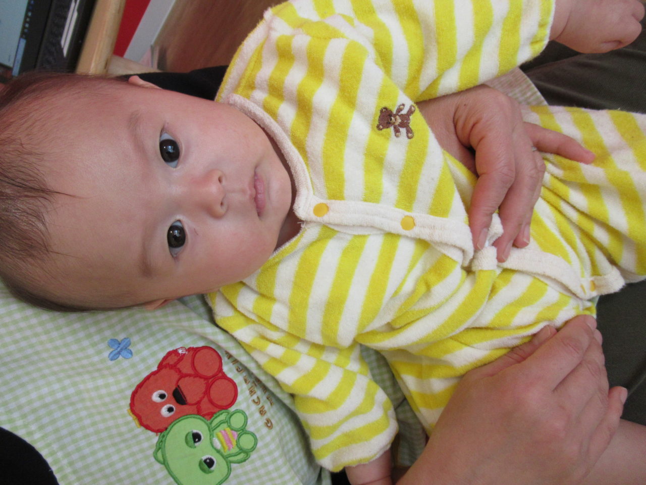 抱っこされてにっこり?
