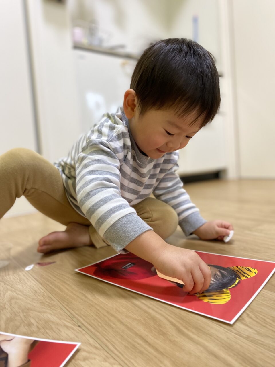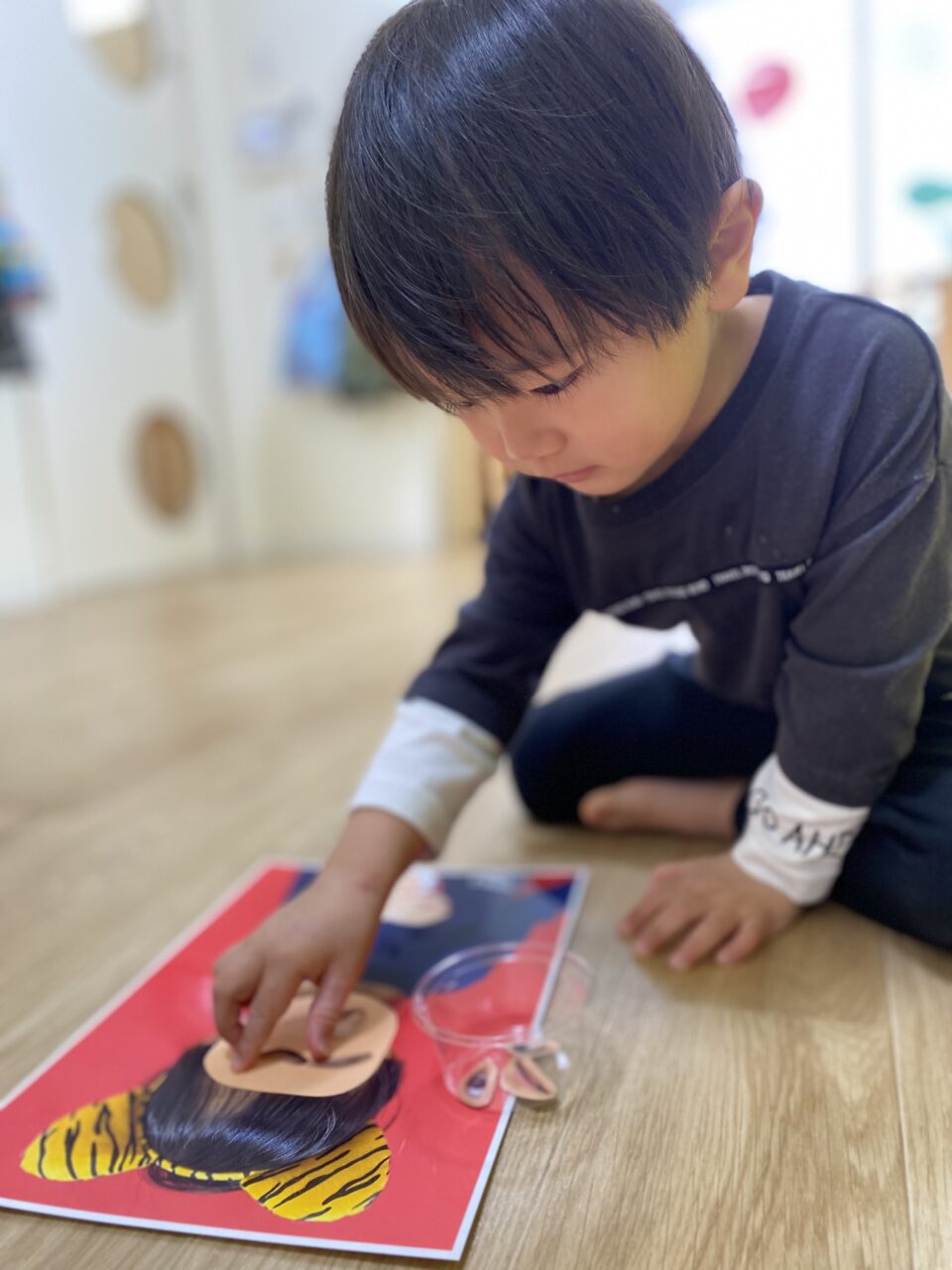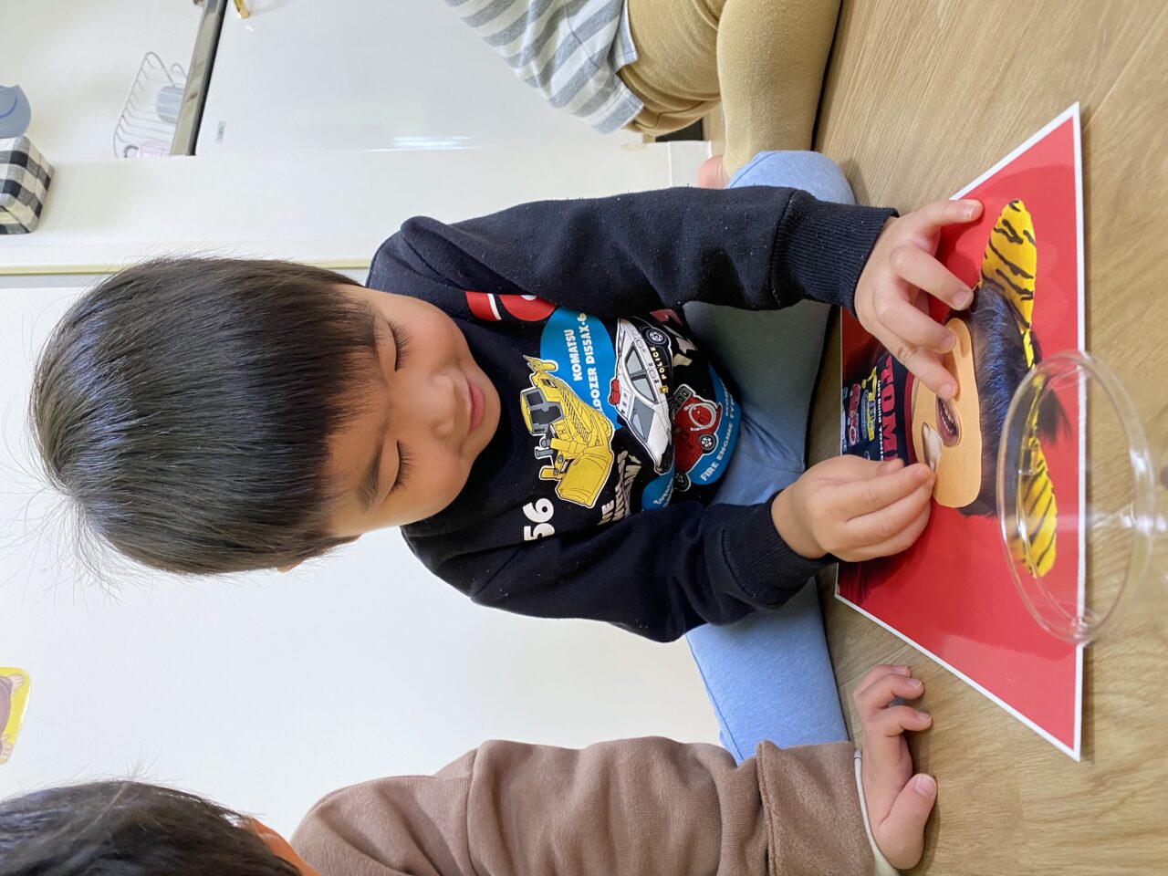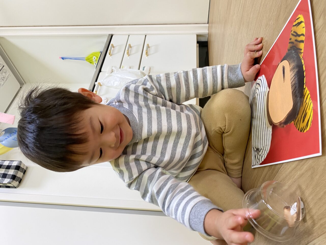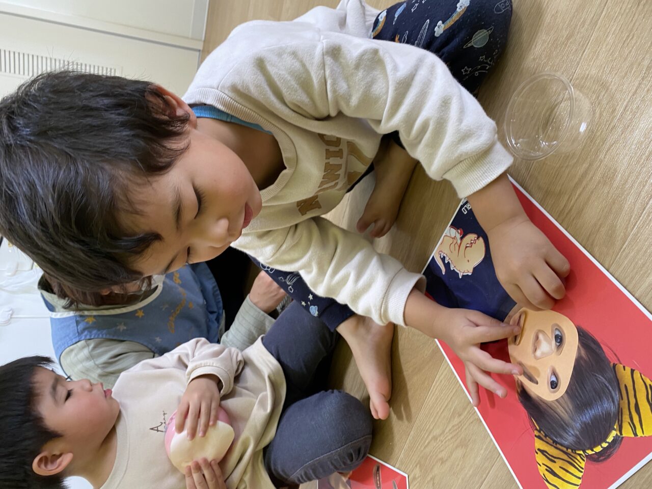 配置によって全く違う顔になるのがおもしろかったようでHくんはどハマり‼︎笑いのツボにも入ってしまったようでした🤣🤣また、お友だちの福笑いと交換となると必ず、Sくんの福笑いを選んでいました😍♡
