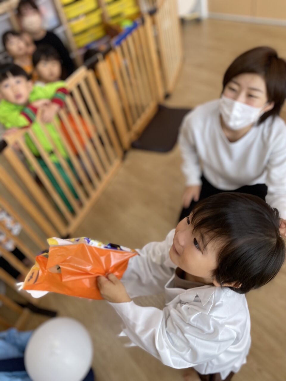自分の写真がついたお菓子を見つけ、お菓子ゲット〜?