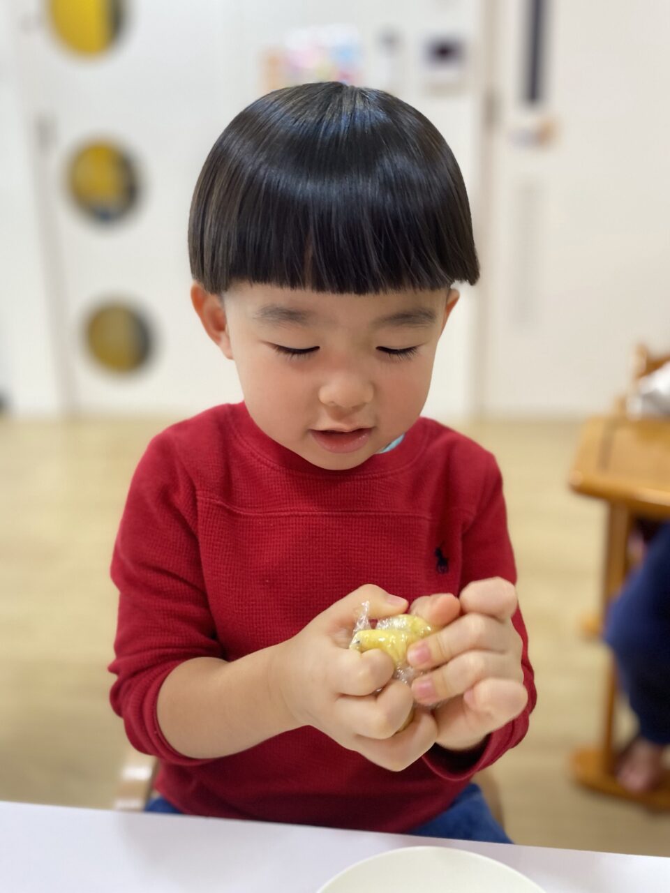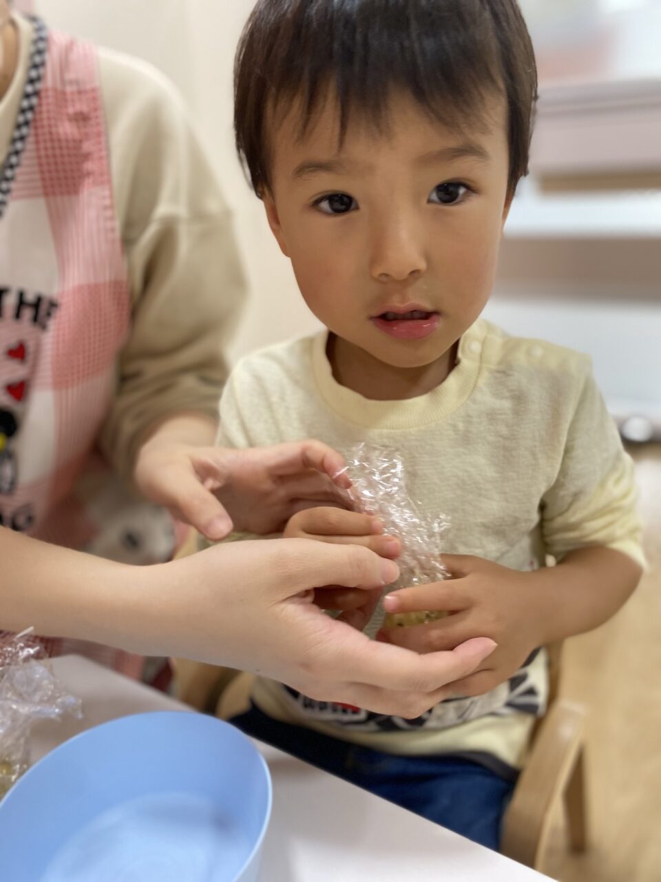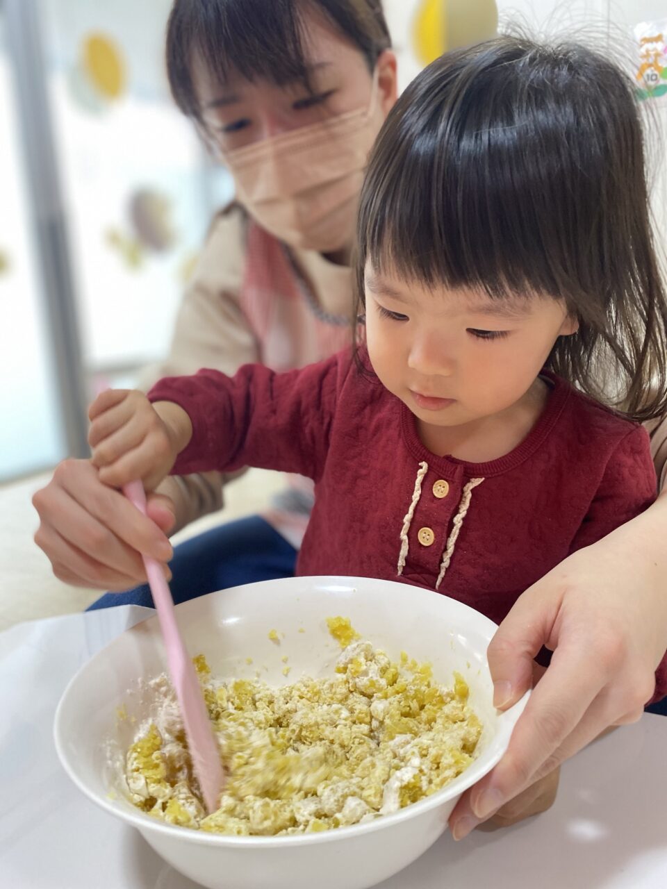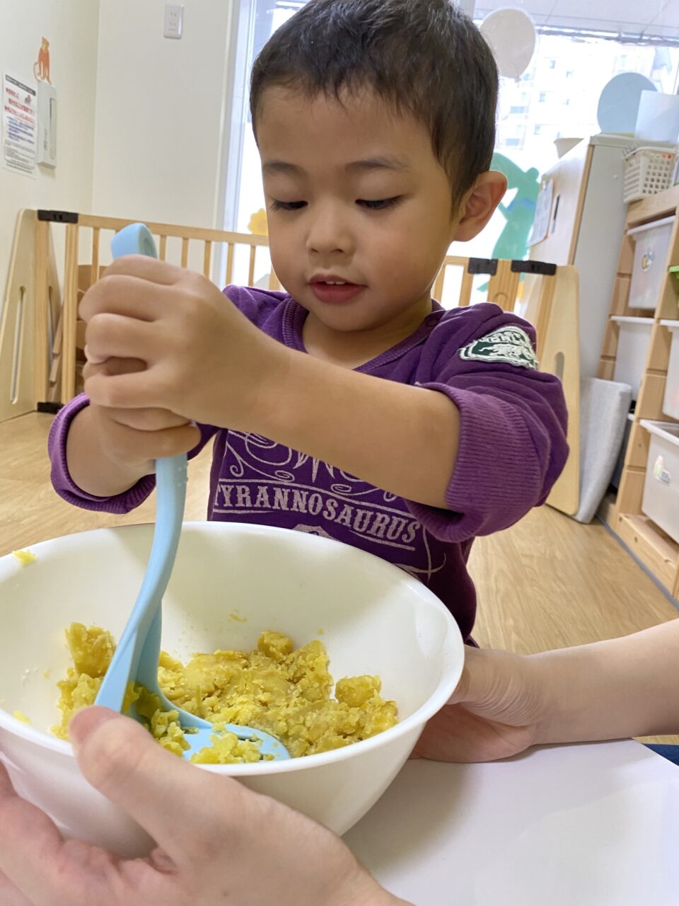 保育士が切るように混ぜていたのよーく見ていたつき組のお兄さんたち!