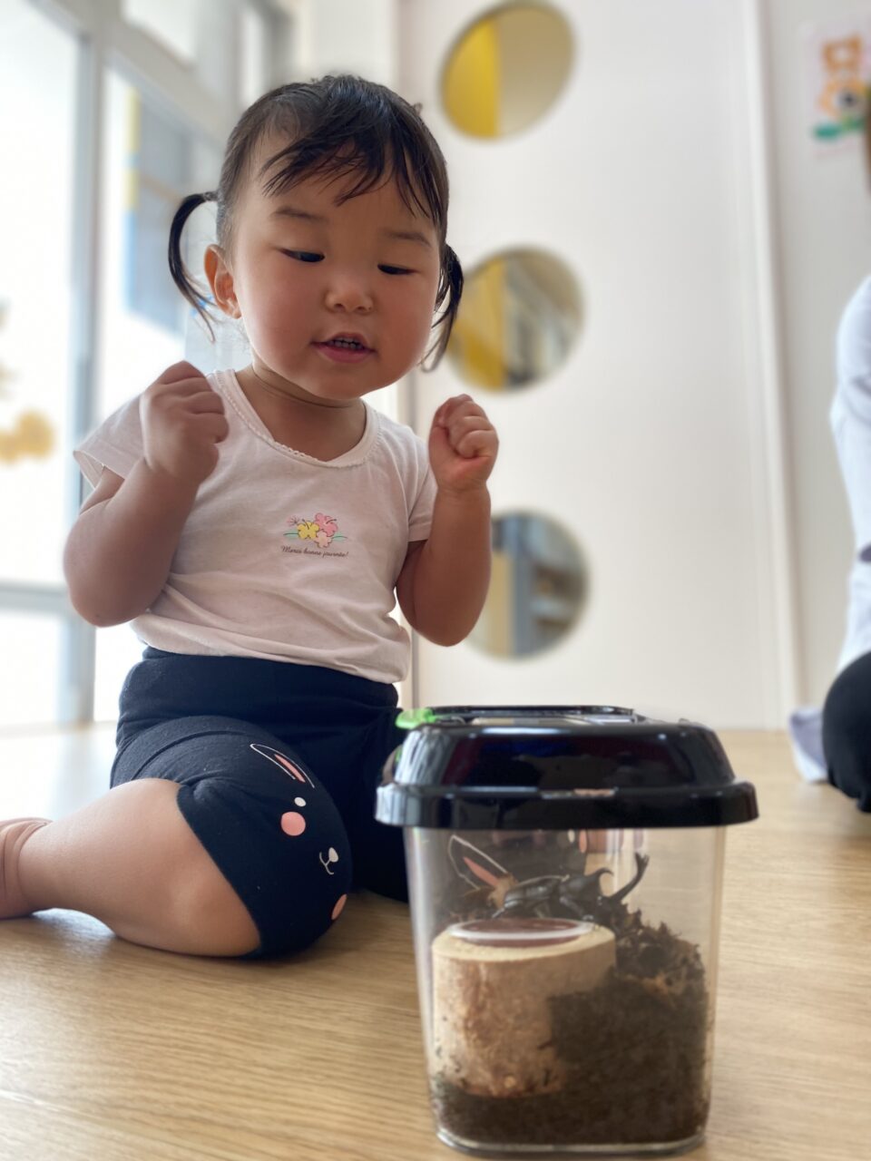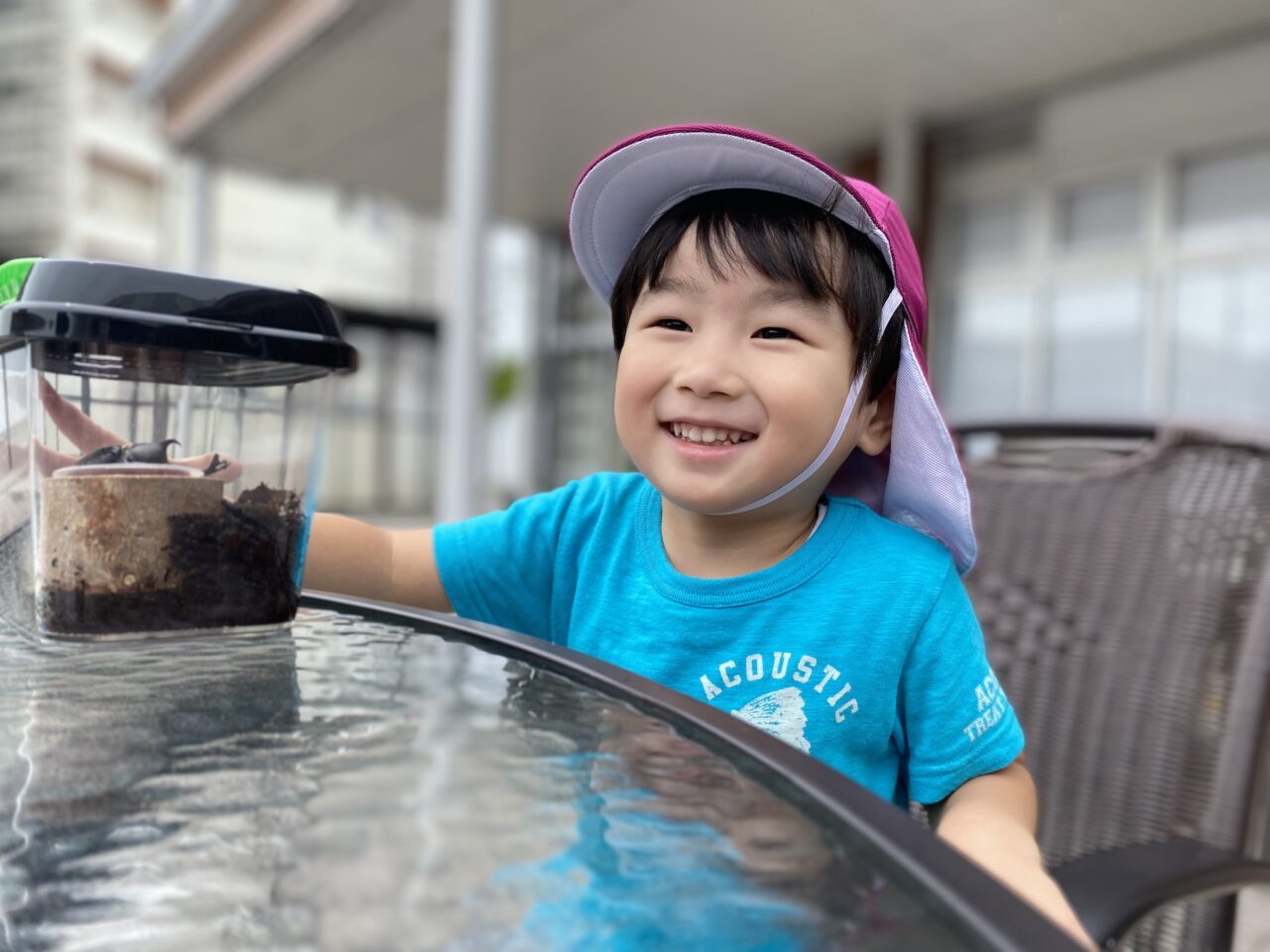 カブトムシを見つめるキラキラしている目も表情も可愛すぎます😍⤴︎⤴︎