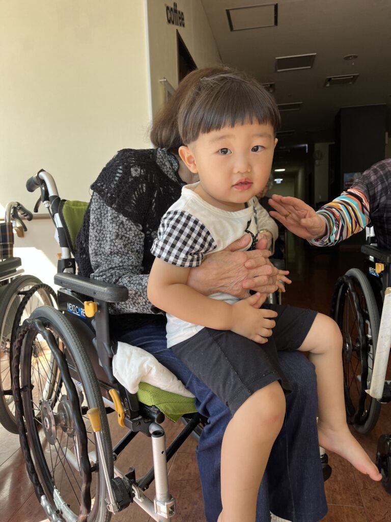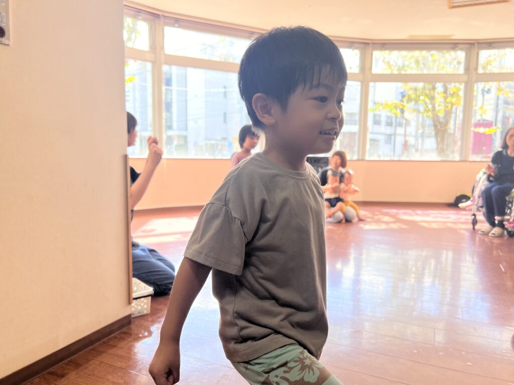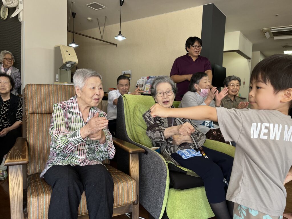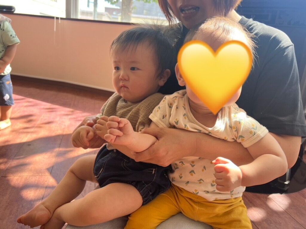 一緒に手遊びをしながら、最後はジャンケンで勝負をしたり、抱っこしてもらったりとふれあっていた子どもたちです?