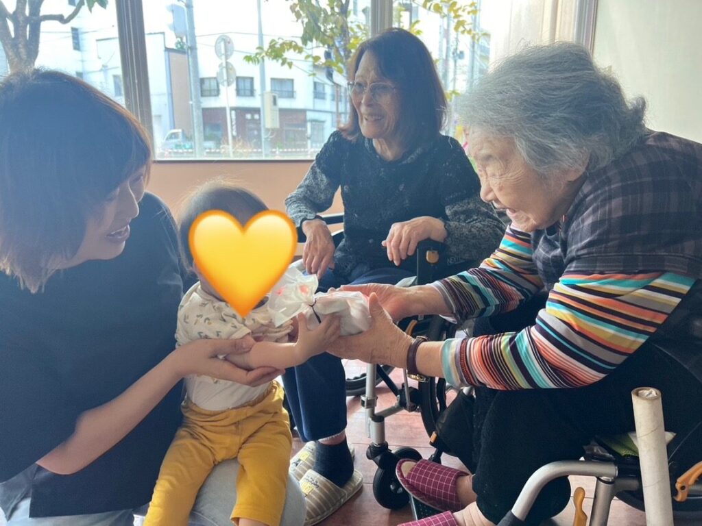 利用者さんと一緒にやきいもグーチーパーの手遊びを行いながら交流しました??