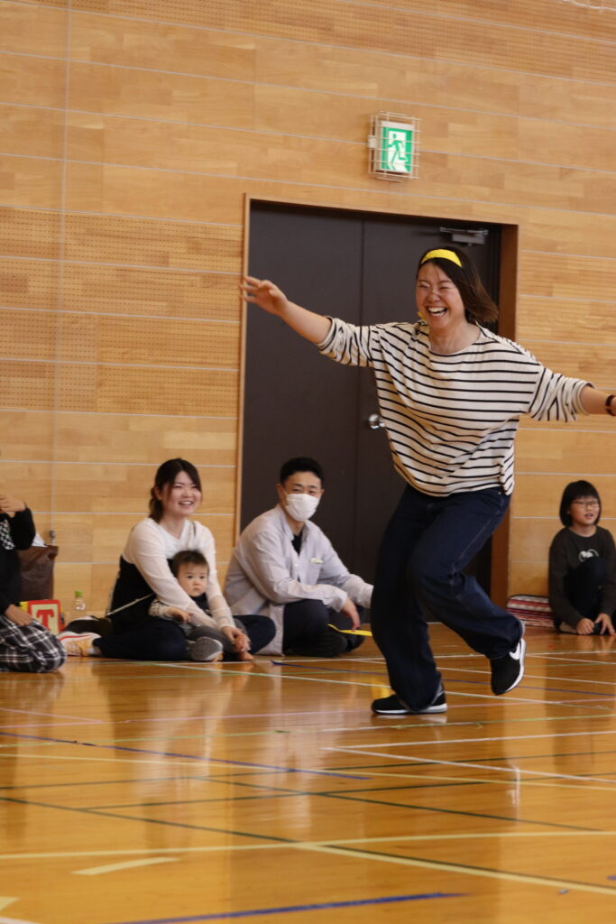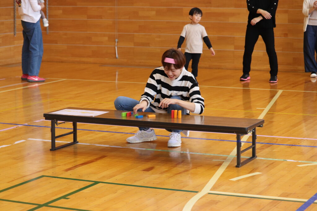 スピード&慣れない中腰にお家の方は悲鳴を上げながら、相手の親子との他に我慢との戦いだったかもしれません?負けてしまった親子も笑顔で私たちの目には『良い汗かいた〜✨』と楽しんだ様子が見られた瞬間でした♬
