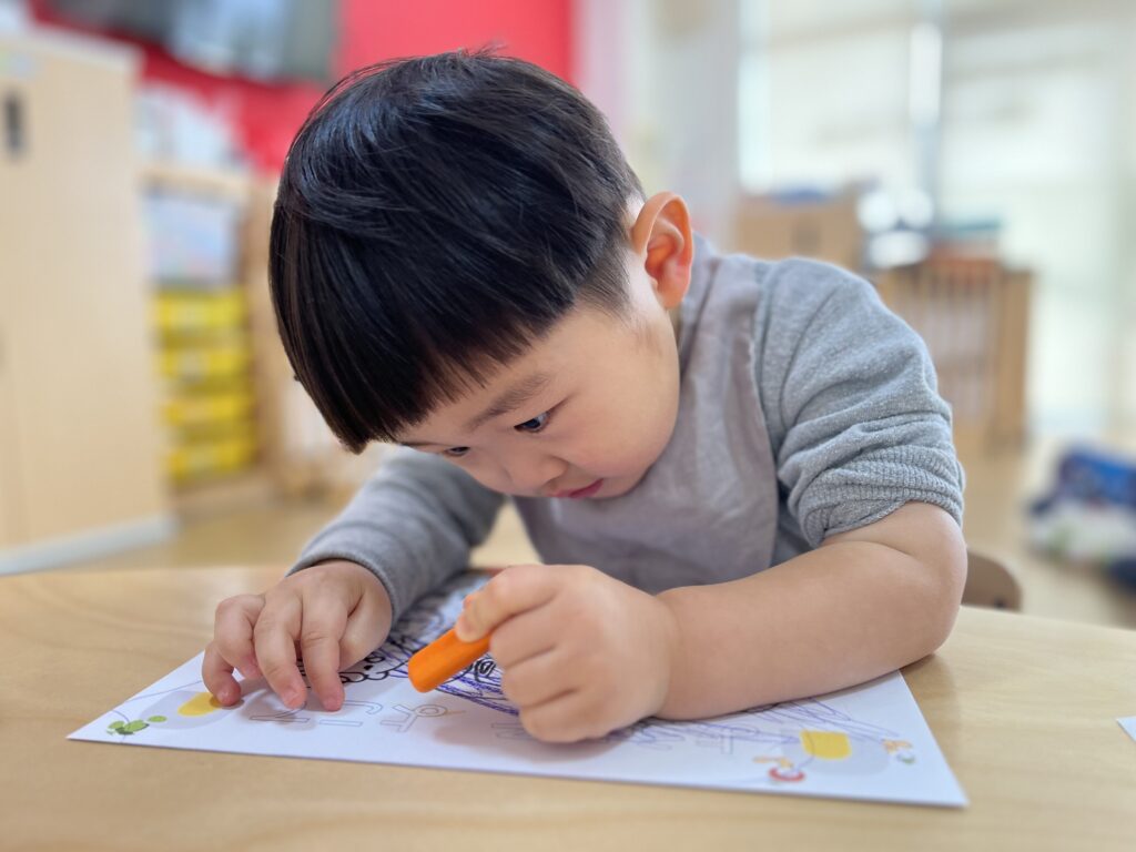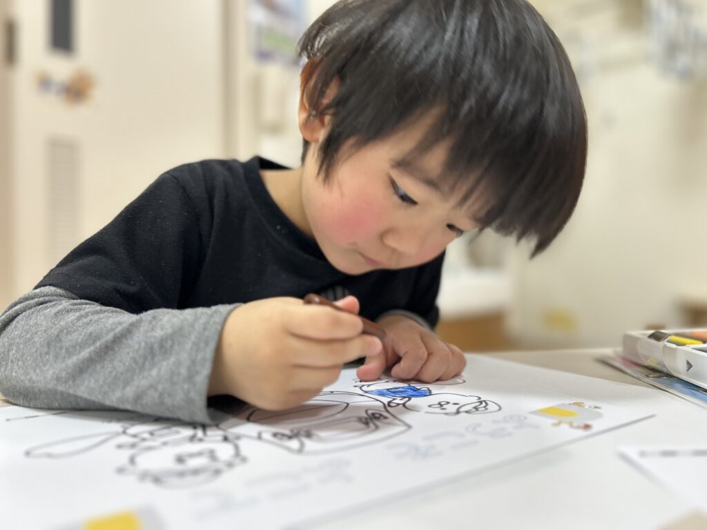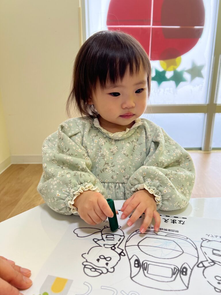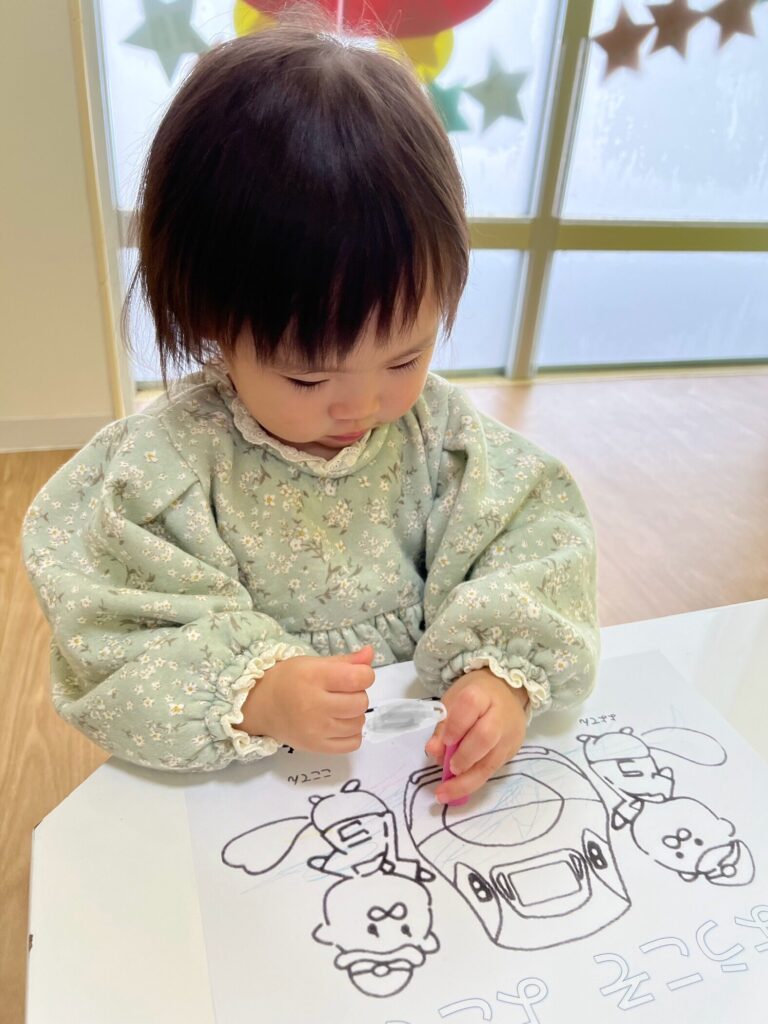 保育士の『かきかき〜✨』『ぬりぬり〜♡』と魔法の言葉に導かれ、色を塗っていきます?笑