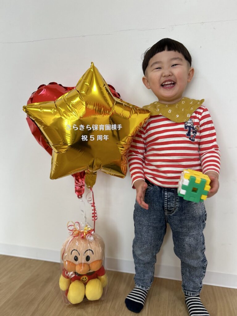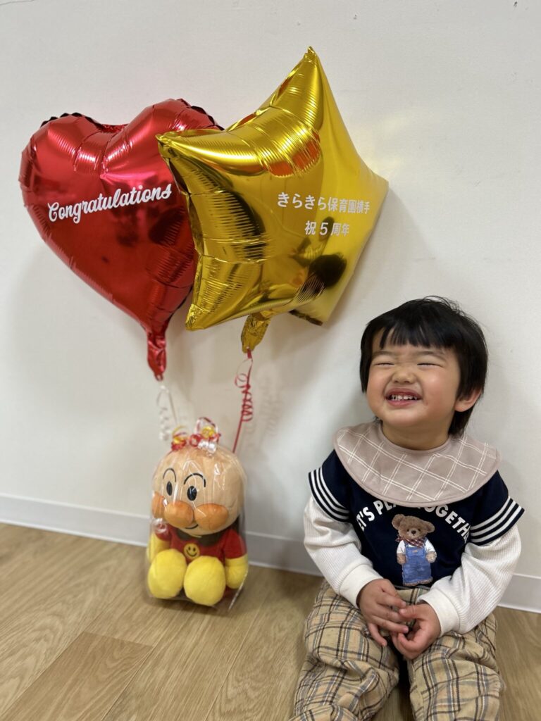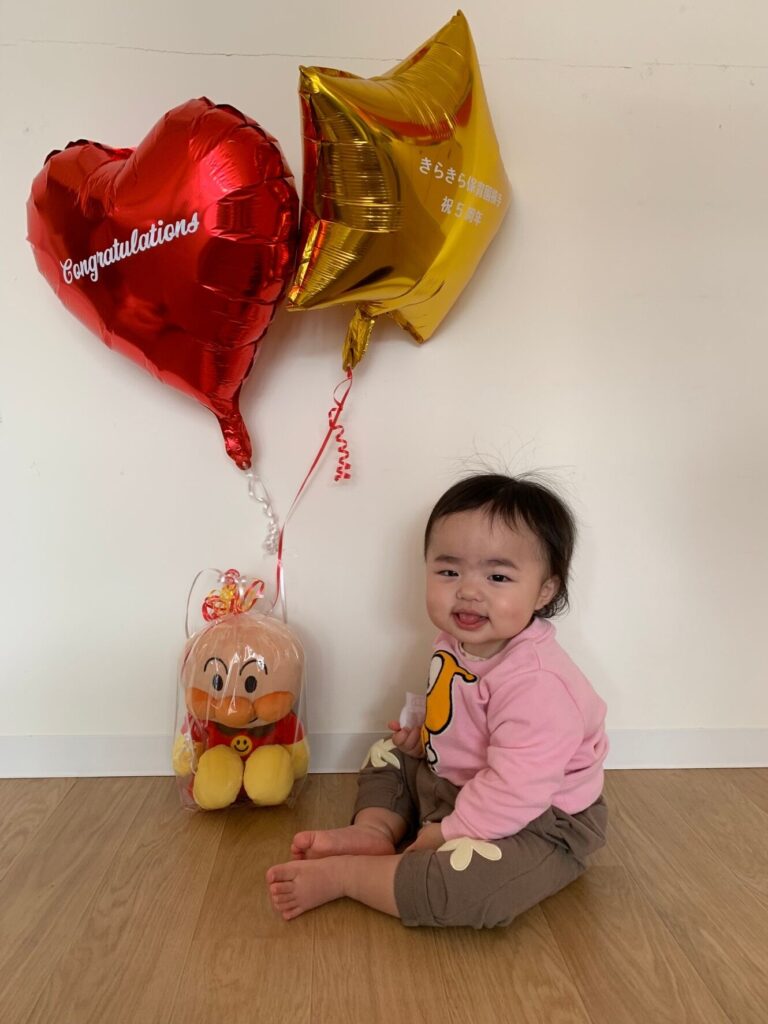 4月1日で5周年を迎え、各施設からお花が届き、『すごーい、お花🌼』『良い匂い〜✨』など