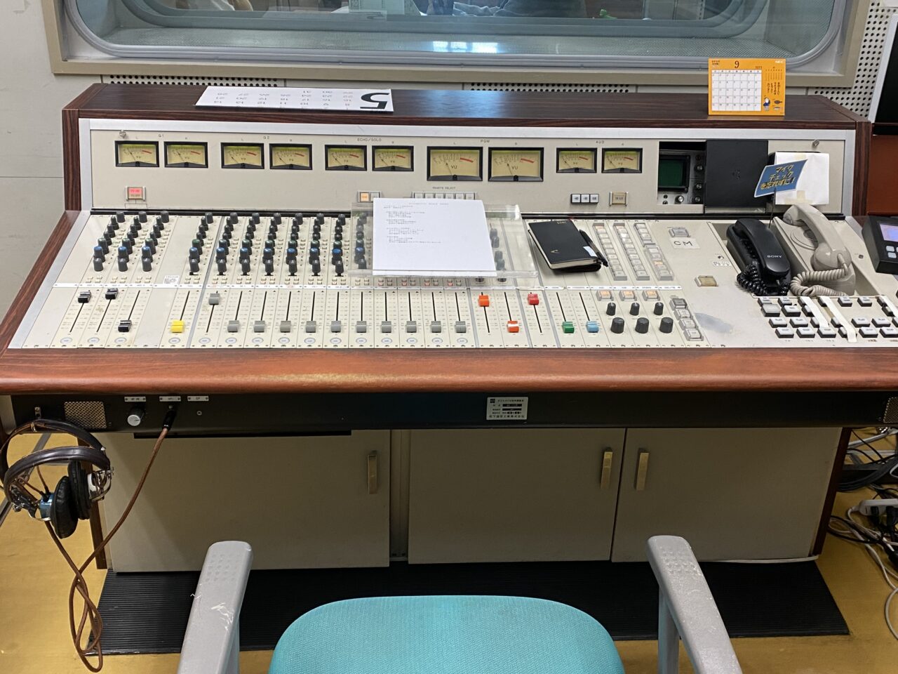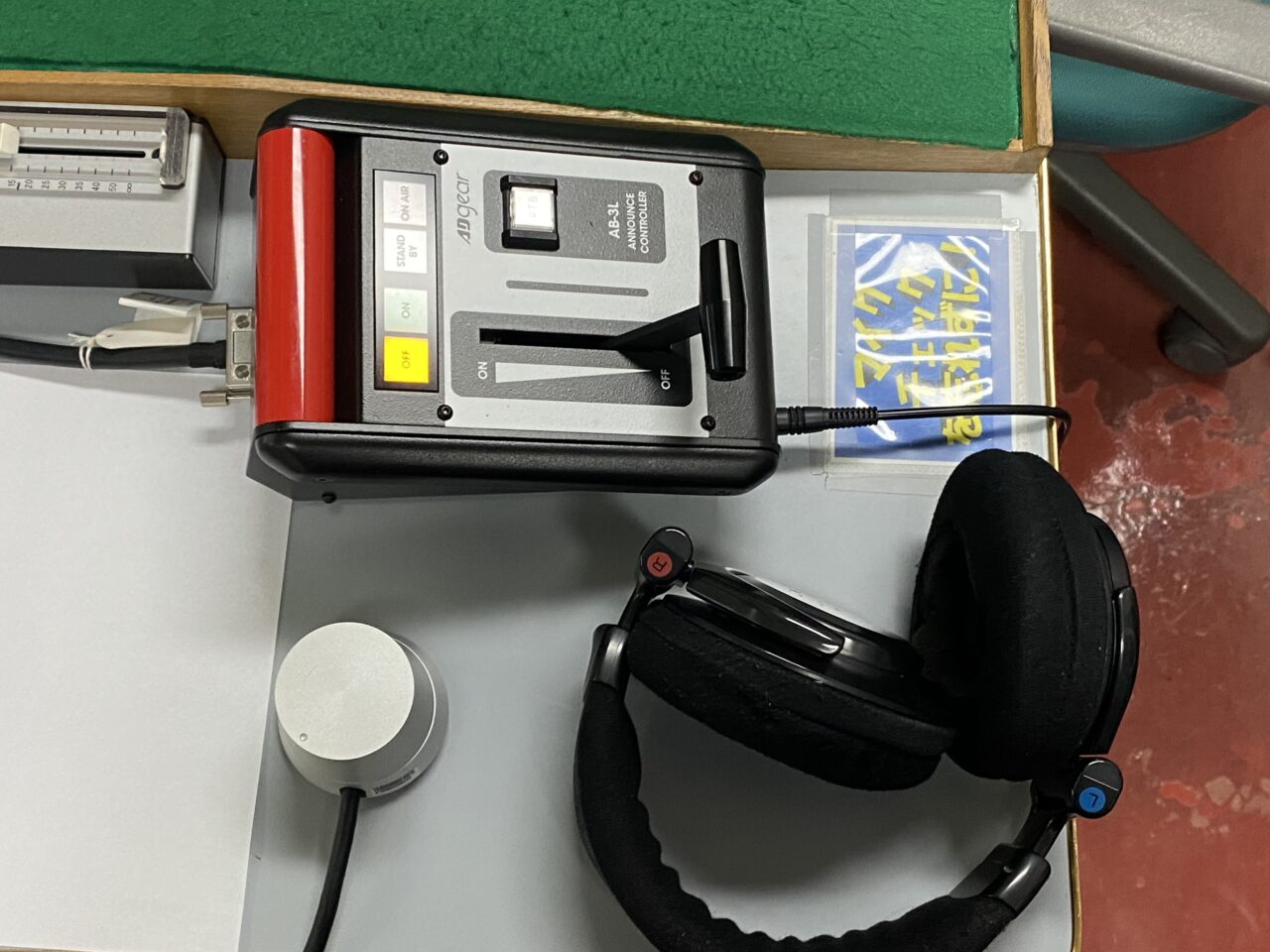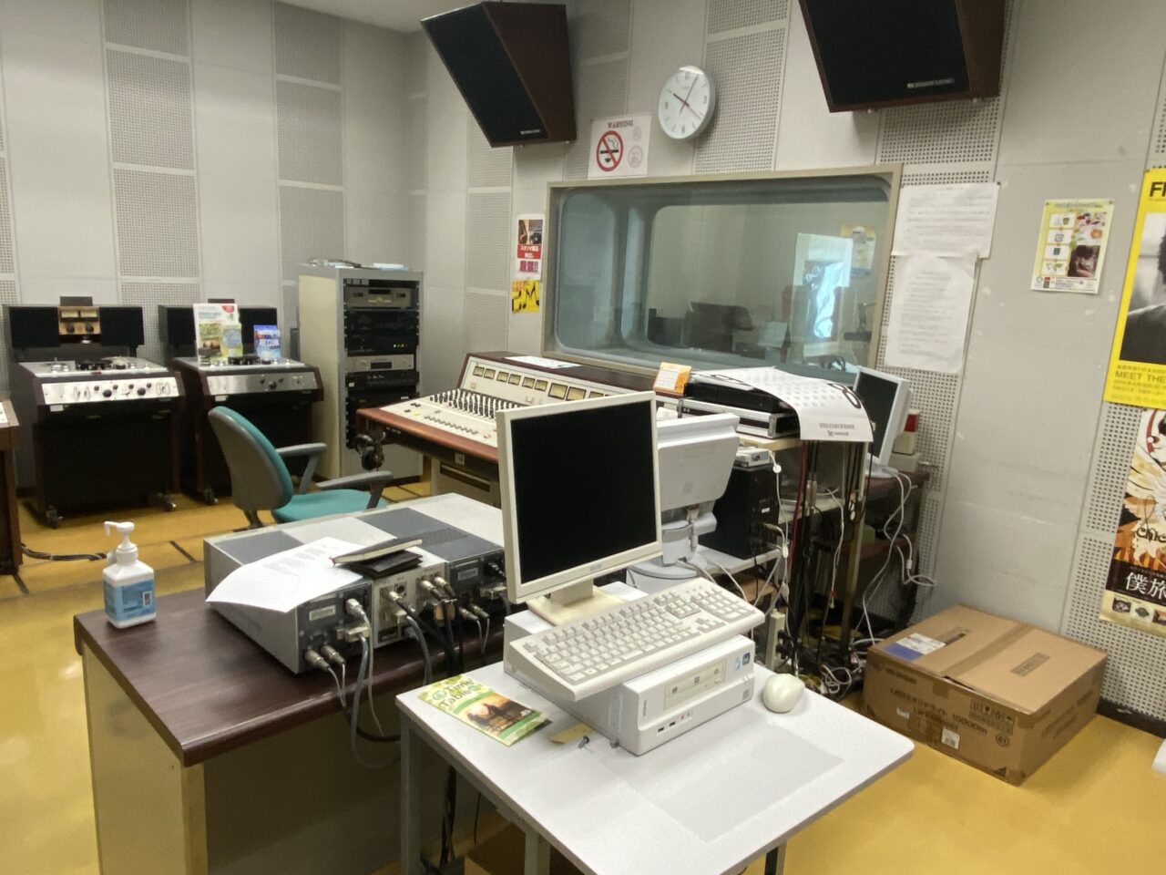 収録場所は会社の2階にあり、中には音量調節の機械、収録した内容の長さが確認できたり、BGMをかけたりする機械などが設置されていました?️
