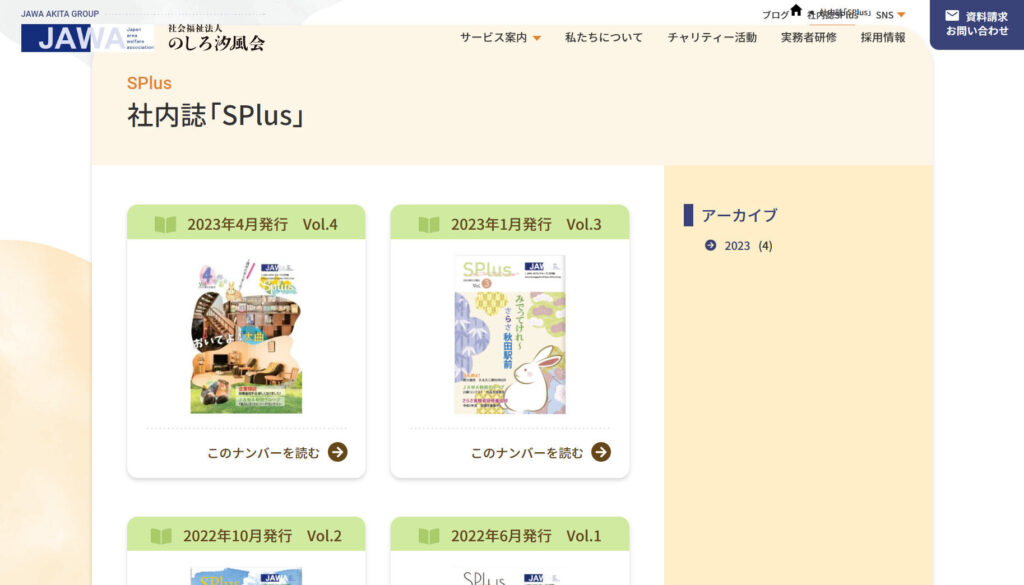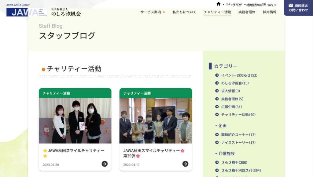 ”社会福祉法人のしろ汐風会”のページの追加と社内誌コーナー・チャリティー活動・実務者研修・採用情報の項目が増えました!