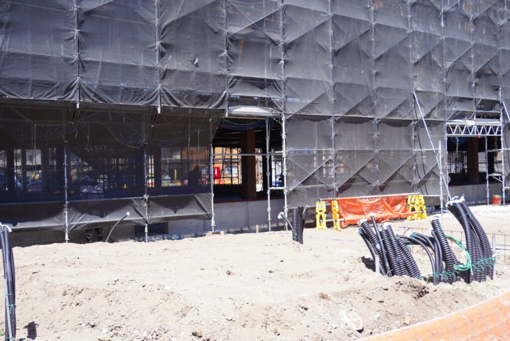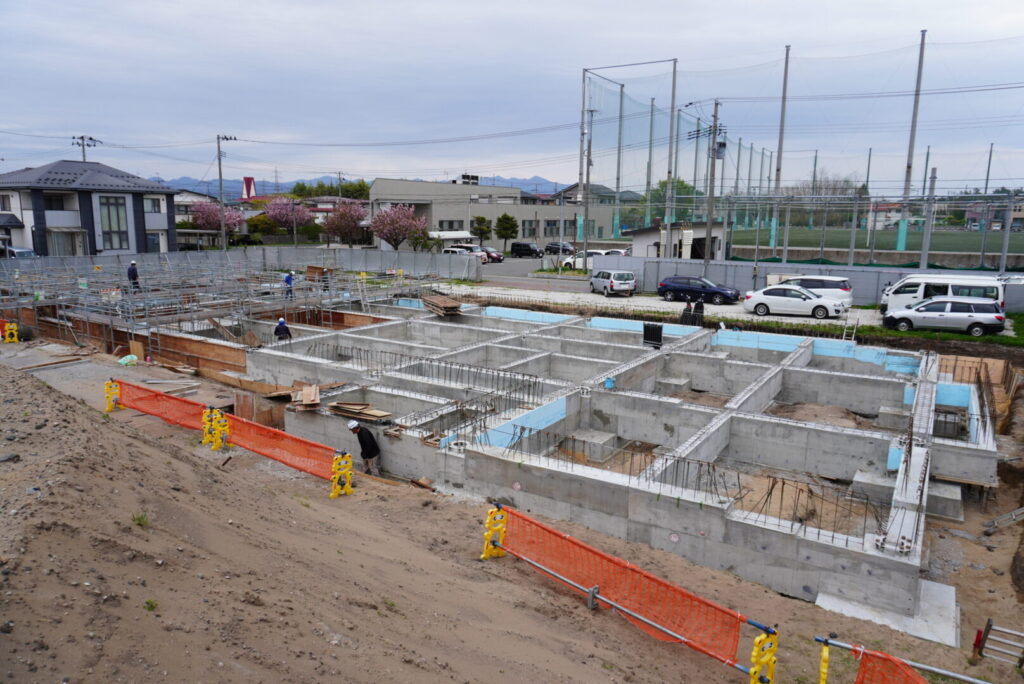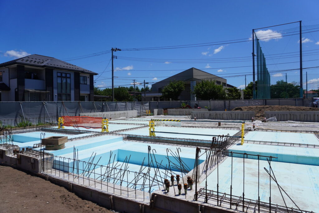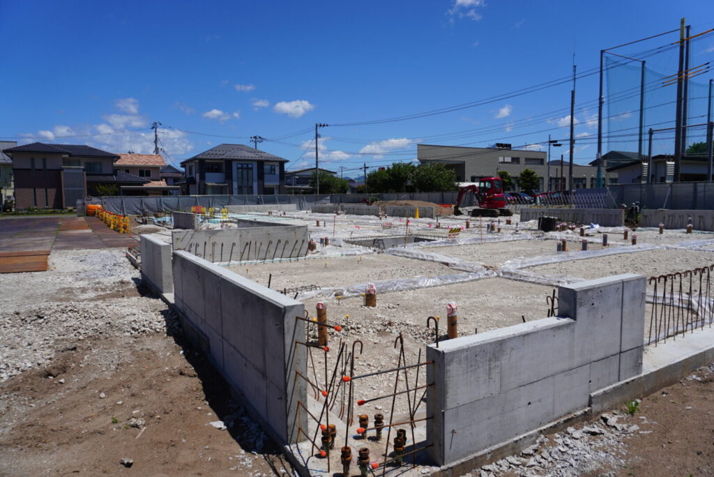 6月頃までは、基礎工事の建物と地面のパイプとなる土台作りの作業が行われていました。