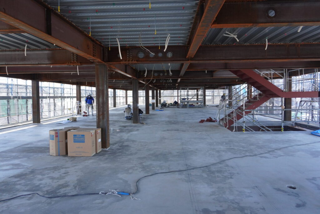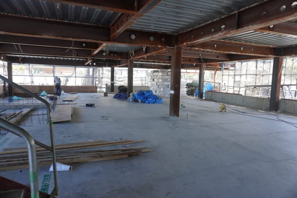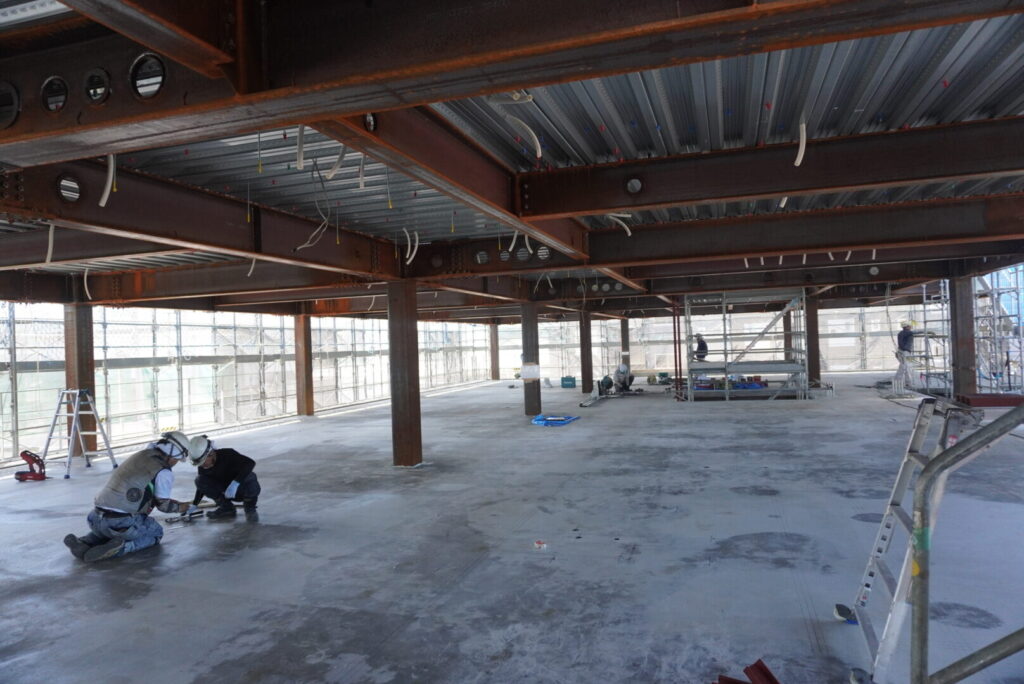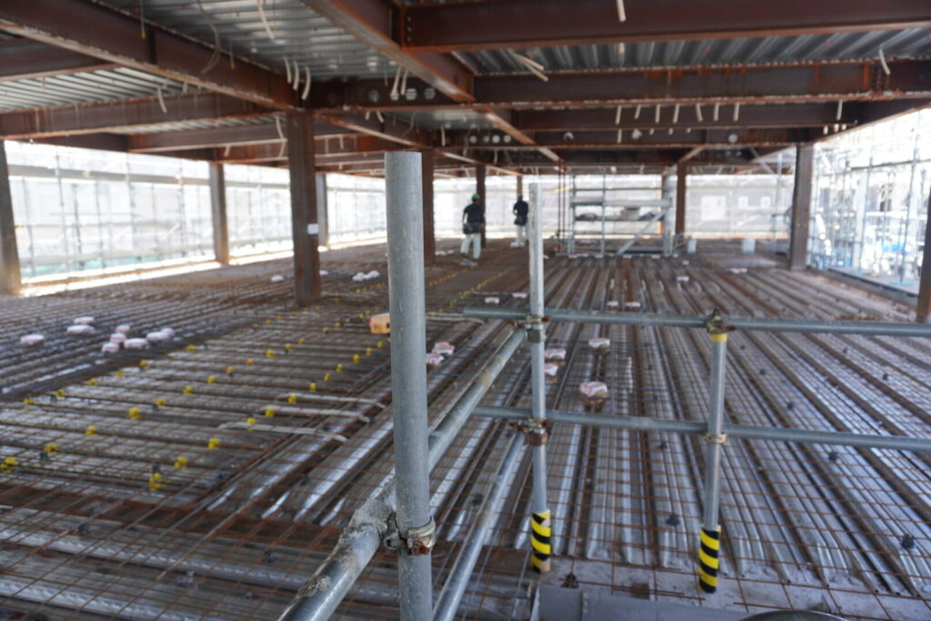 3階の床のコンクリ―ト完成後は、建物の中の柱を作る作業や外壁工事に取り掛かるそうです!