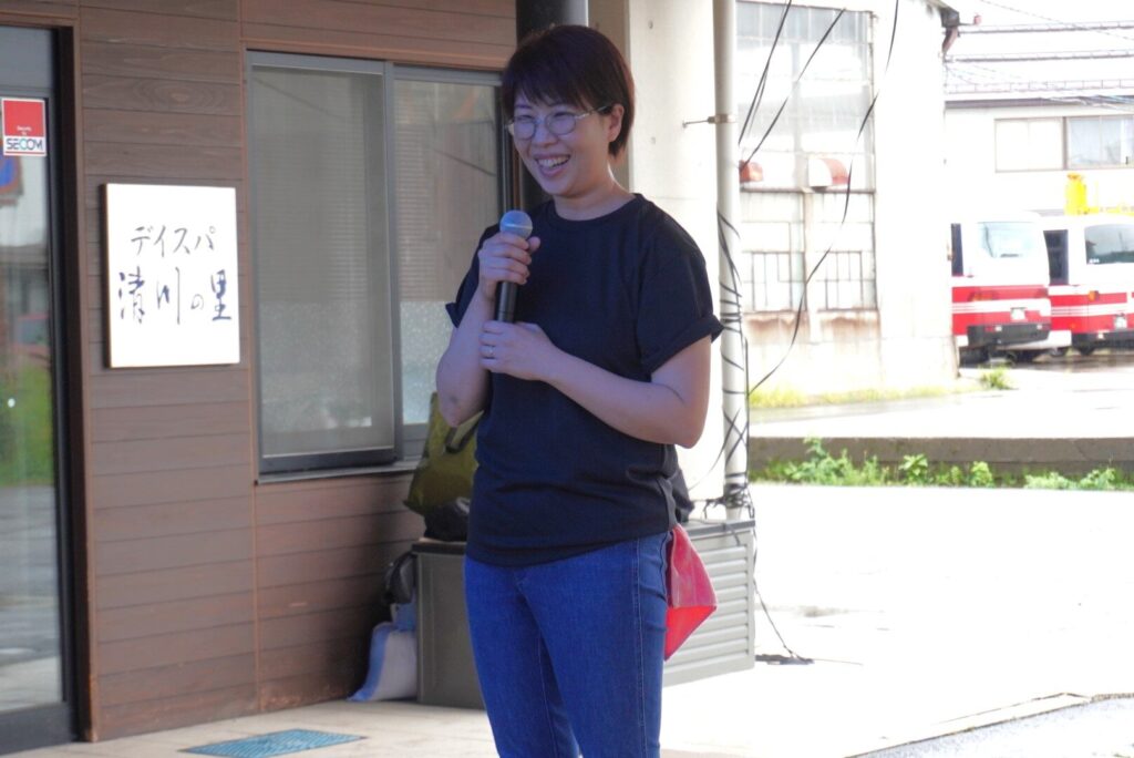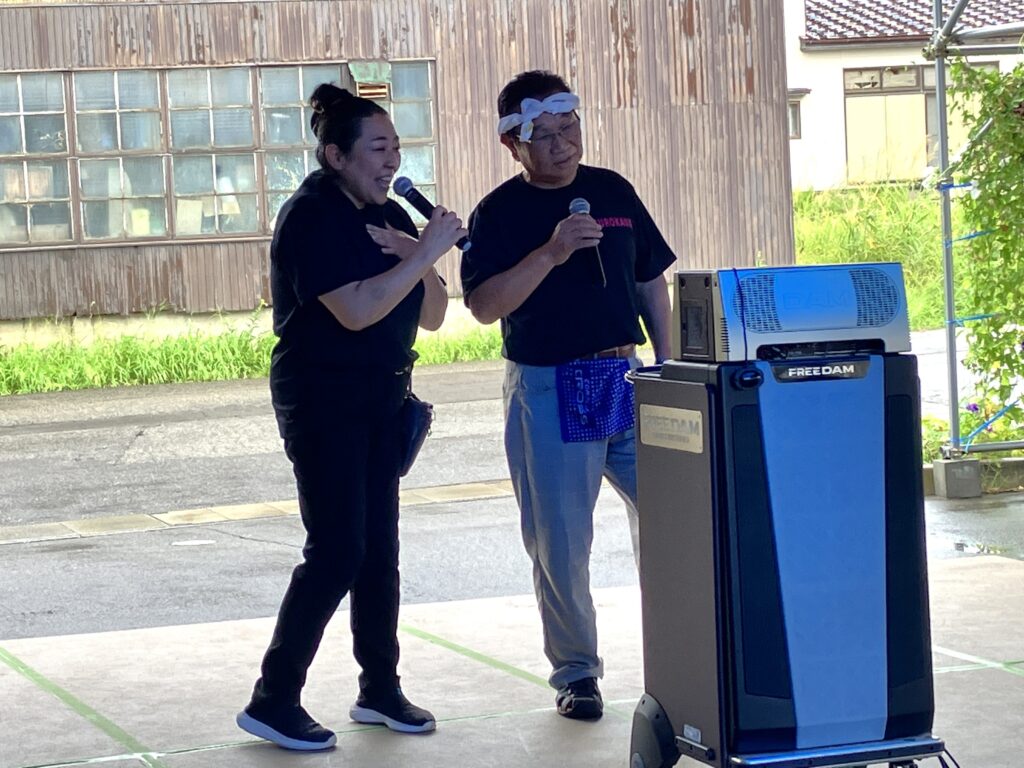 元気いっぱいの司会進行のさらさ横手別館スパの佐々木さんと施設長の佐藤さんの挨拶により