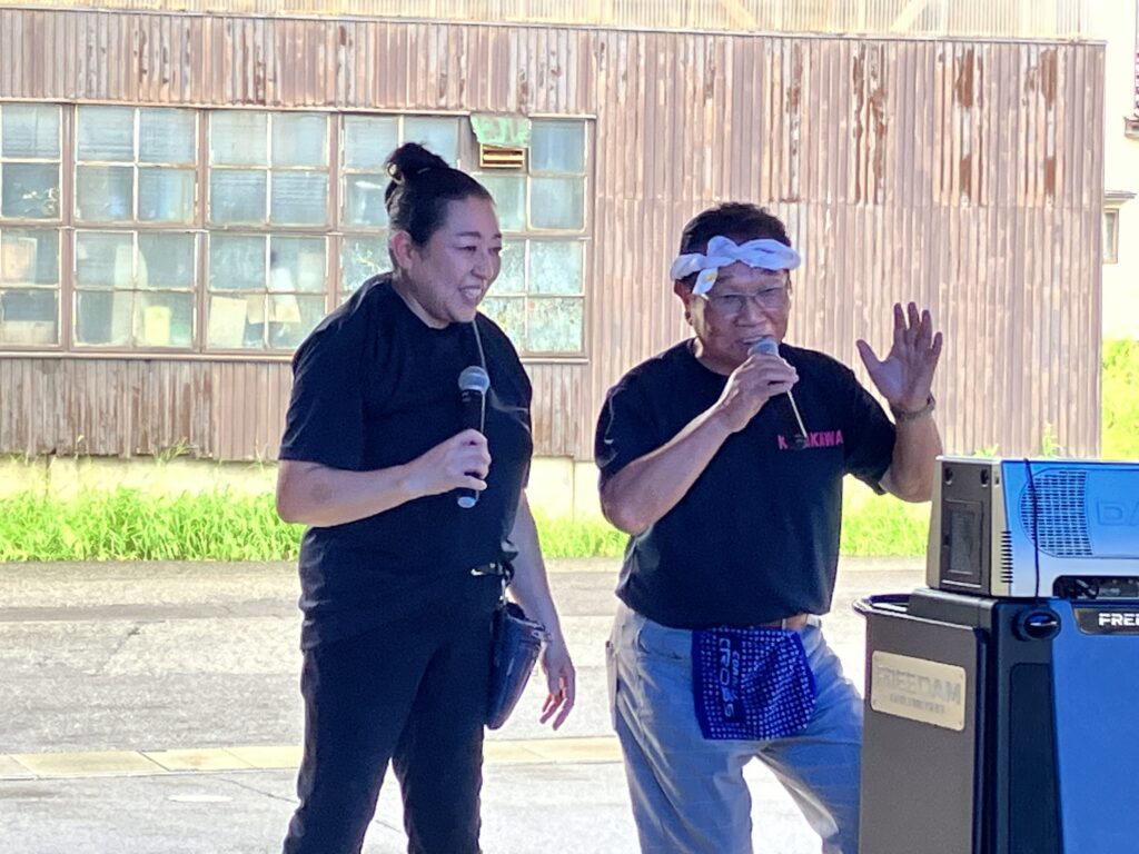 司会進行の佐々木さんと施設管理部の山田部長によるデュエットターイムッ??