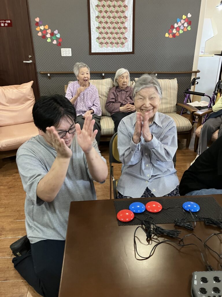 勝った、負けたもそうですが、音楽に合わせて手を叩いたり、足を上げたりも楽しい運動になりますね!!