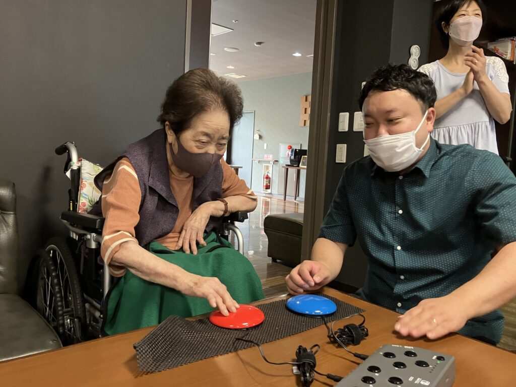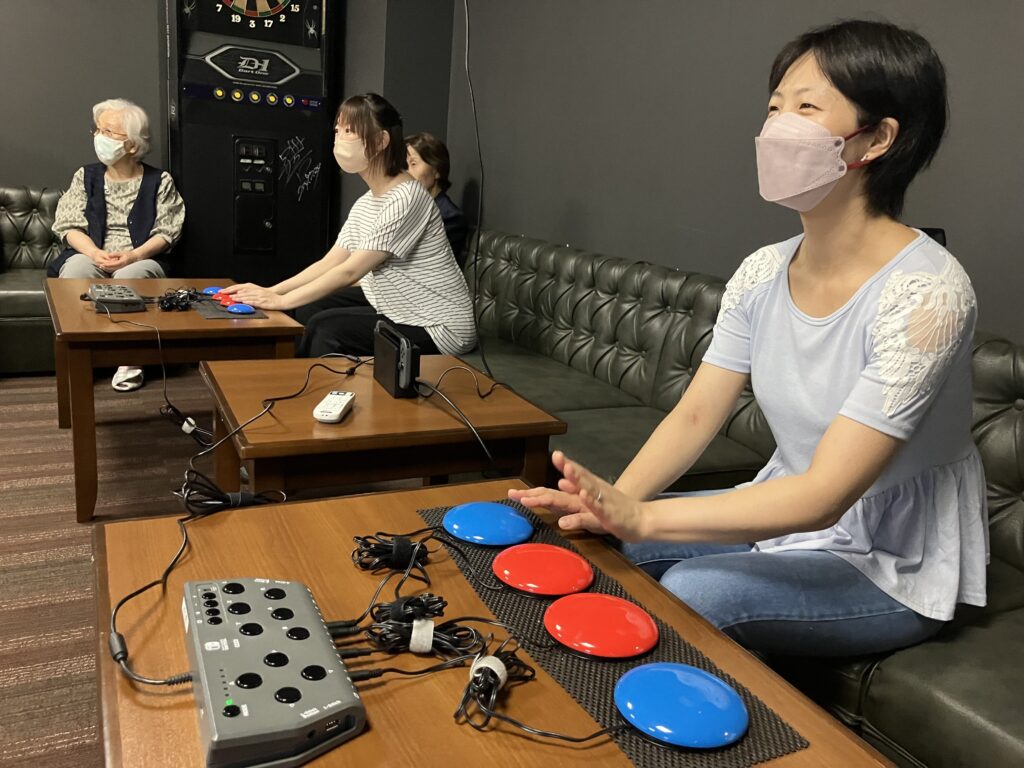 今回は音楽に合わせてボタン型コントローラーを使用し、