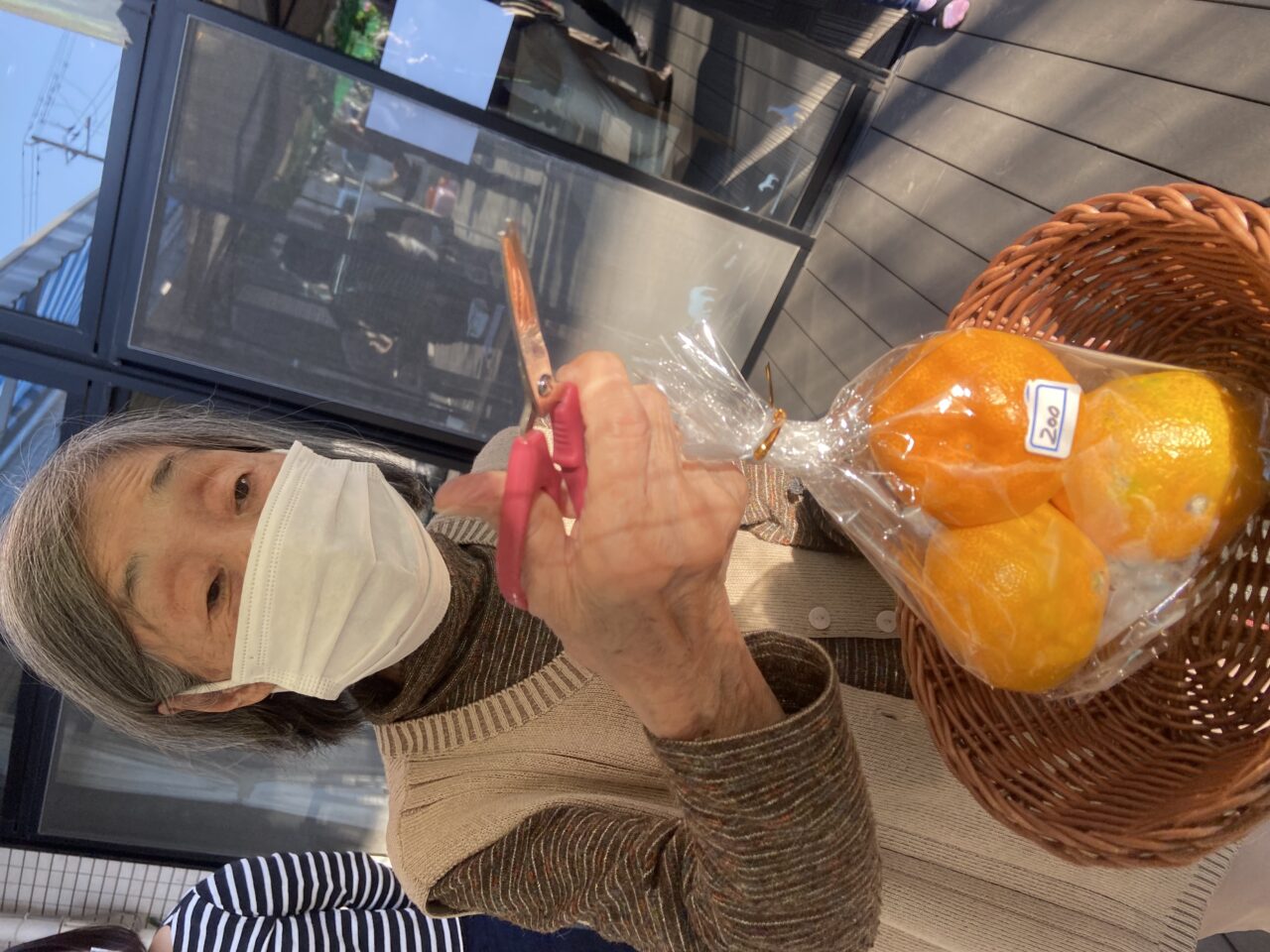 皆さん自分の好きな果物を器用にチョキチョキする皆さん✄