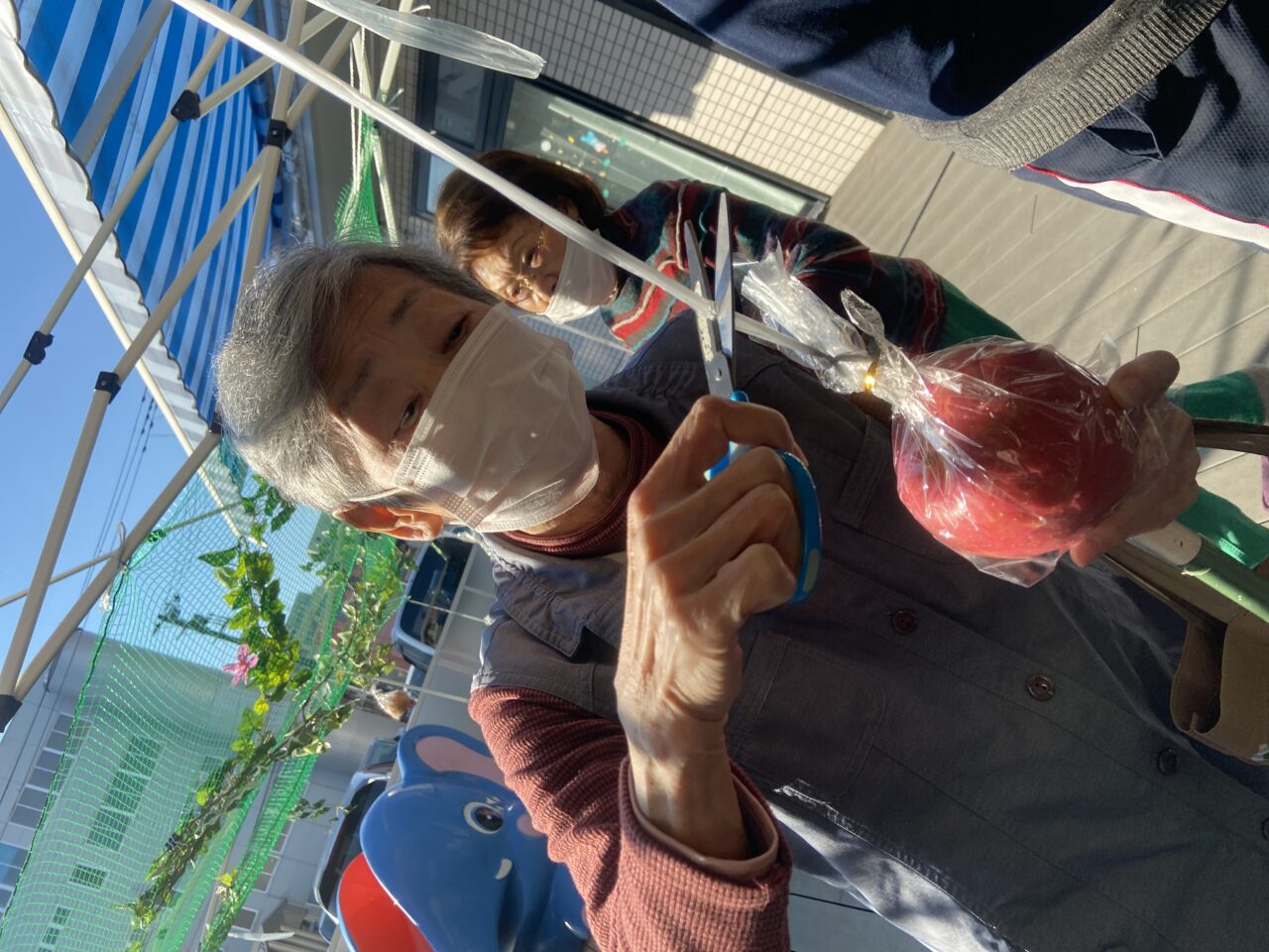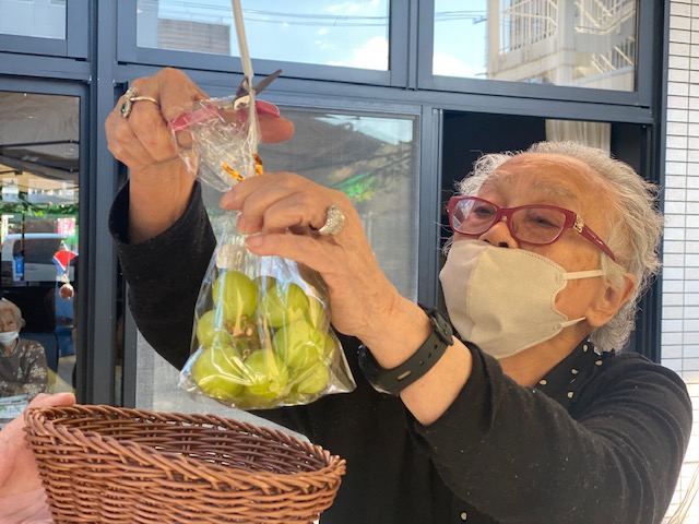 今日の秋田駅前では、秋の果物狩りを行いました?!!!